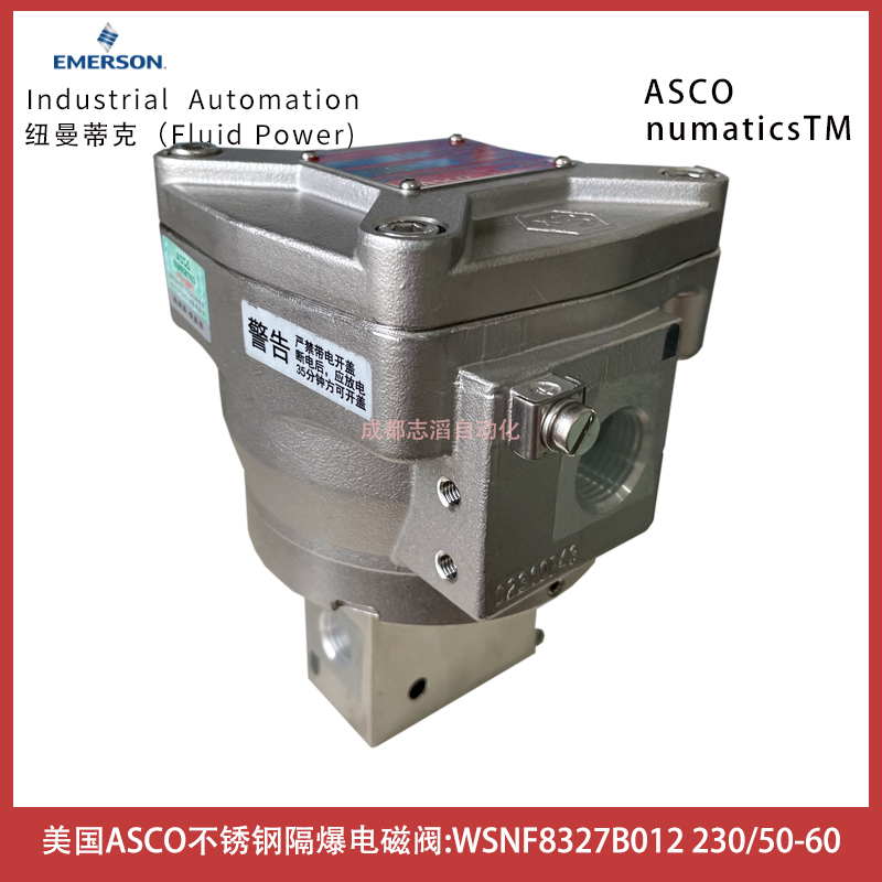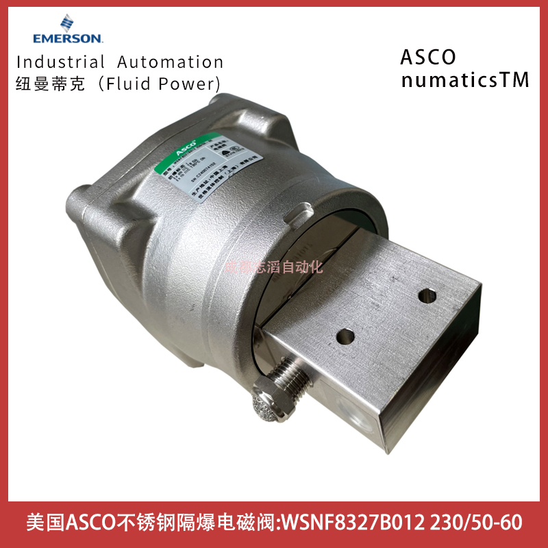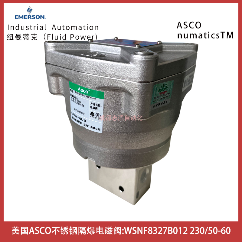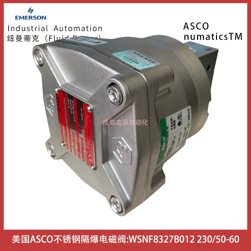 WSNF8327B012電壓230/50-60美國ASCO隔爆不銹鋼電磁閥-埃邁諾冠技術參數簡介:管徑1/4、通徑5.7mm、流量系數0.45立方米/小時、7.5升每分鐘、工作壓力范圍0-10bar、線圈功耗等級BP、閥體材料不銹鋼、介質空氣,惰性氣體,水,油、溫度范圍-40到+40攝氏度、密封件材料VMQ硅橡膠、線圈是WSNF(隔爆型、316SS外殼ATEX+IECEX(EN/IEC60079/6124、電氣接口1/2NPT)、產地中國上海、