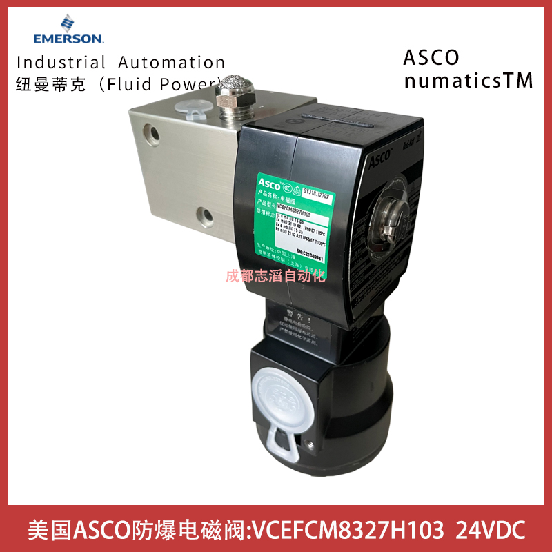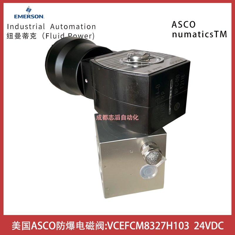VCEFCM8327H103線圈電壓24VDC美國阿斯卡ASCO防爆電磁閥技術參數簡介:管徑1/4、通徑5.7mm、流量系數0.45立方米/小時(7.5l/h)、工作壓差0-10bar、線圈功耗RP、響應時間75-100ms、zui大粘度65CST(MM/S)、安裝方式NAMUR、直動式、機能2位3通、