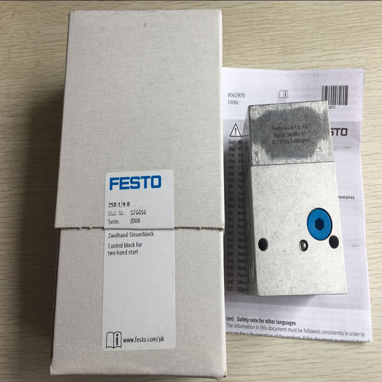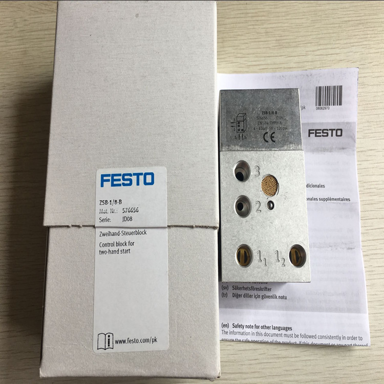ZSB-1/8-B德國費斯托(festo)雙手控制塊簡介:接口尺寸1/8、壓力范圍4-8公斤、應用在汽車制造行業、訂貨號為576656