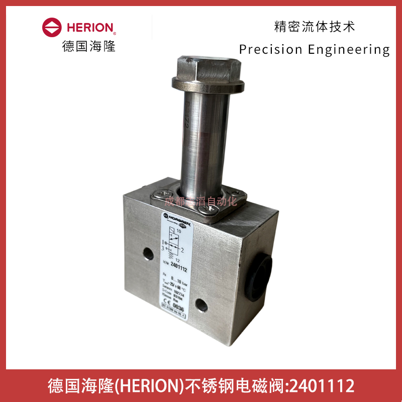 2401112德國海隆HERION直動式不銹鋼電磁閥-埃邁諾冠NORGREN技術參數:接口NPT1/4、電磁線圈組A+B、產地德國、工作壓力(0-10)bar、閥座密封件材質為NBR橡膠、閥體重量0.65!應用行業:石油化工行業閥門控制!