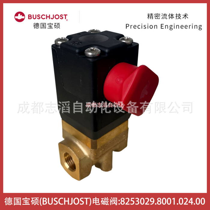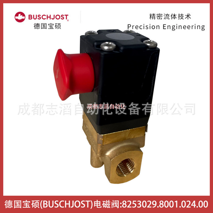 8253029.8001.024.00德國寶碩電磁閥BUSCHJOST隔膜閥-控制元件技術參數簡介:接口G1/4、通徑10mm、流量1.5立方米/小時、壓力0-10bar(0-145PSI)、重量0.5kg、產地德國、介質中性氣體和液體、切換功能常閉、操作電磁制動,帶有強制提升功能、按照位置可選、流動方向單向、流體溫度-10到90攝氏度、環境溫度-10到50攝氏度、閥體材料黃銅、密封件NBR、內部部件不銹鋼、貨期10-12周