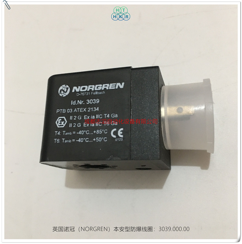 3039.000.00英國(guó)諾冠(NORGREN)本安型電路電磁線圈技術(shù)參數(shù):用于本安型電路的電磁線圈、防護(hù)等級(jí)EEXIAIICT6、線圈標(biāo)稱阻值275歐姆、切換電流27毫安、線圈阻值330歐姆、終端電壓13.7伏、環(huán)境溫度范圍負(fù)40到正50攝氏度、流量溫度正50攝氏度、線圈重量0.85千克、線圈默認(rèn)電壓為24V直流、產(chǎn)地捷克、合格證明PTB03AREX2134,CSA認(rèn)證、NOLR51090-4,FM認(rèn)證、所需接頭符合DINEN17031-801認(rèn)證A型貨ISO4400規(guī)范、安裝符合FM和CSA要求、電纜密封套不在供貨范圍之內(nèi),型號(hào)請(qǐng)參考附件