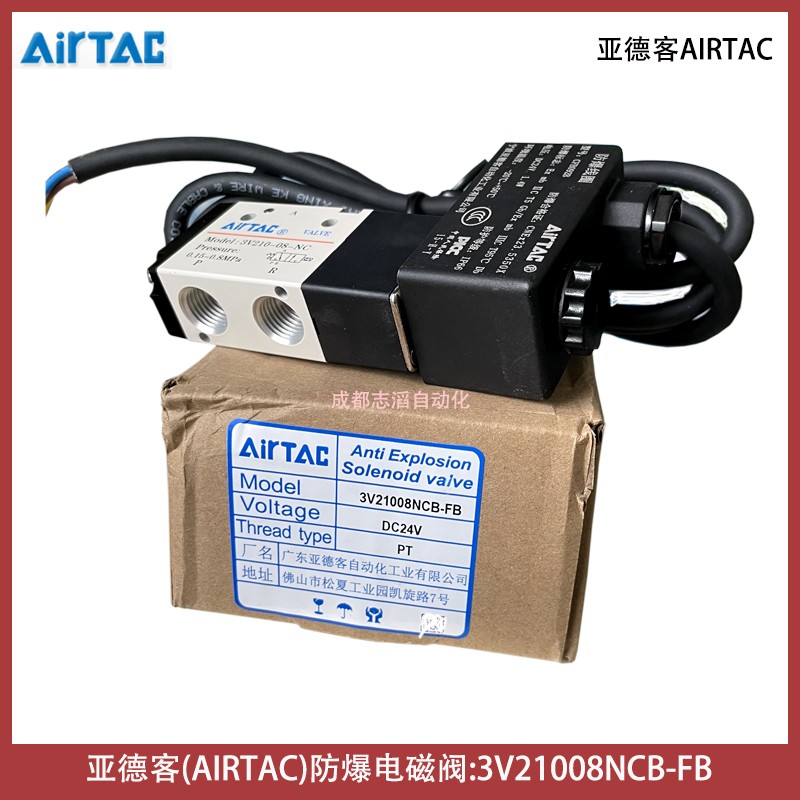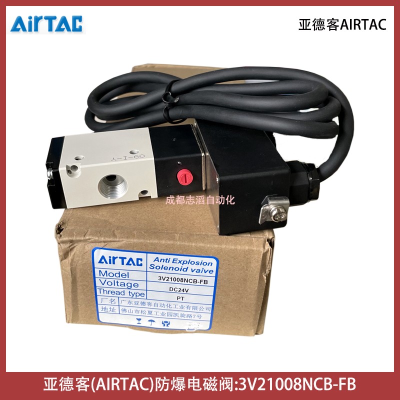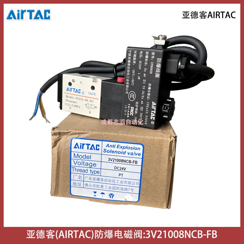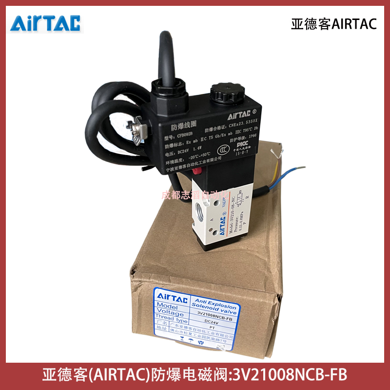 3V21008NCB-FB線圈型號CFB092B電壓24VDC亞德客AIRTAC防爆電磁閥技術參數簡介:工作介質空氣(經40um以上濾網過濾)、動作方式內部引導式或外部引導式、接管口徑進氣=出氣=PT1/4、有效截面積17平方毫米(CV=1)、位置數為2位3口、使用壓力范圍0.15-0.8mpa、保證耐壓力1.2mpa、工作溫度-20到70攝氏度、本體材料鋁合金、潤滑不需要用、動作頻率5次/秒、重量為0.22kg、配防爆型DC24V線圈(技術參數AMISCO、3009MD024W3、II2G Exmb IIC T5Gb、II2D Extb IIIC T95° IP66 Db、TUV IT 13 ATEX030、U=24VDC I=125mA、Ta=-50到50攝氏度)、產地為中國!