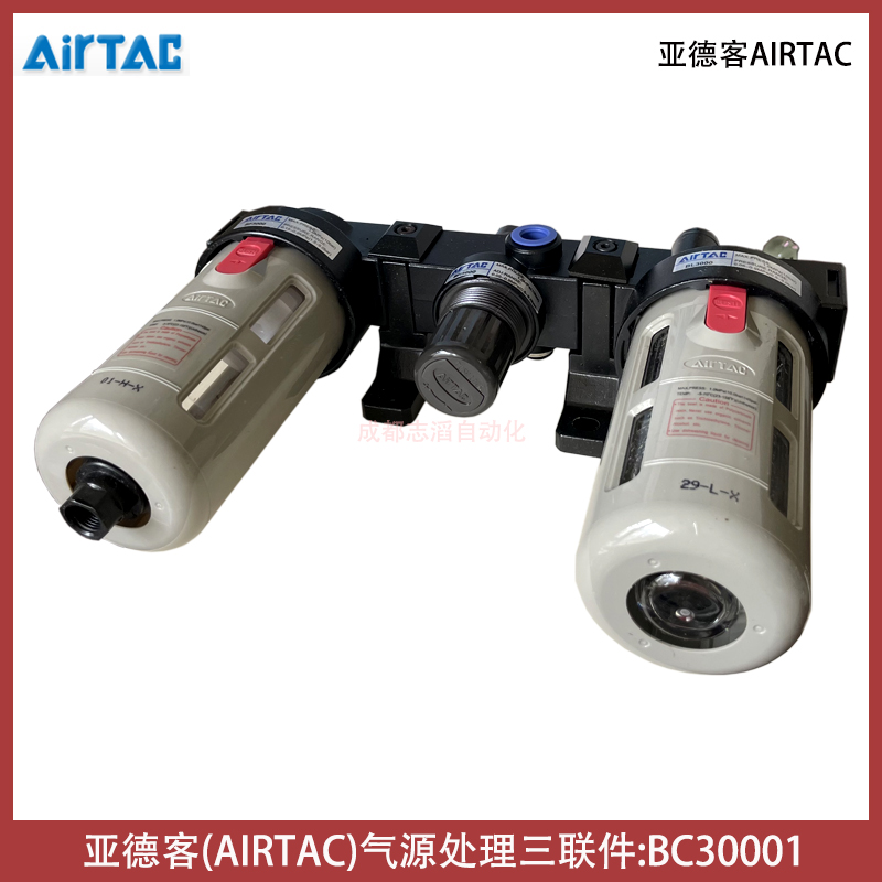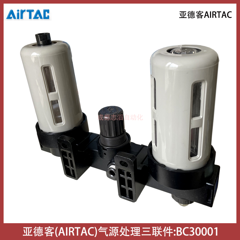 BC30001亞德客AIRTAC三聯(lián)件過濾器BF3000調壓閥BR3000給油BL3000技術參數簡介:工作介質空氣(經40um以上濾網過濾)、接管口徑PT3/8、使用壓力范圍0.15-0.9mpa、保證耐壓力1.5mpa、工作溫度-20到70攝氏度、本體材料鋁合金、潤滑不需要用、濾水杯容量60CC、給油杯容量90CC、建議潤滑油ISOVG32或同等級、濾芯精度40um、構成元件(過濾器BF3000調壓閥BR3000給油BL3000)、產地為中國