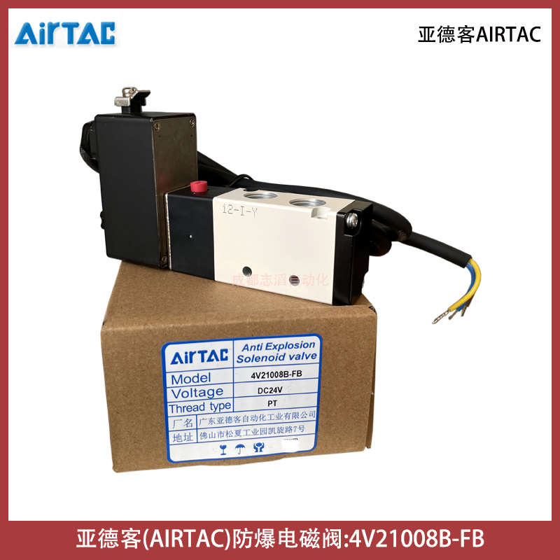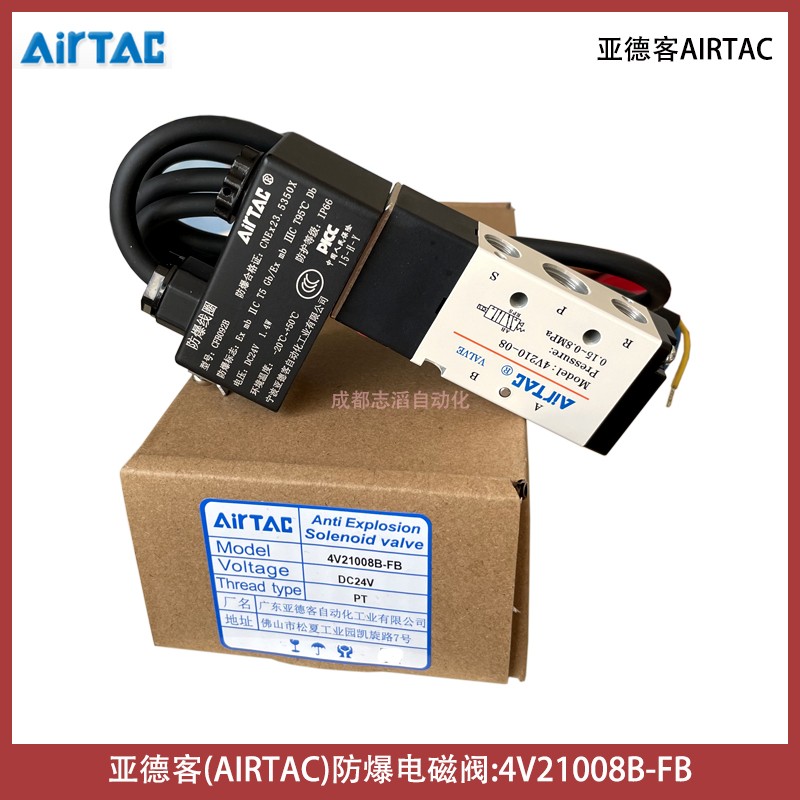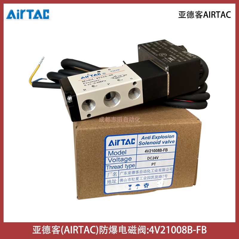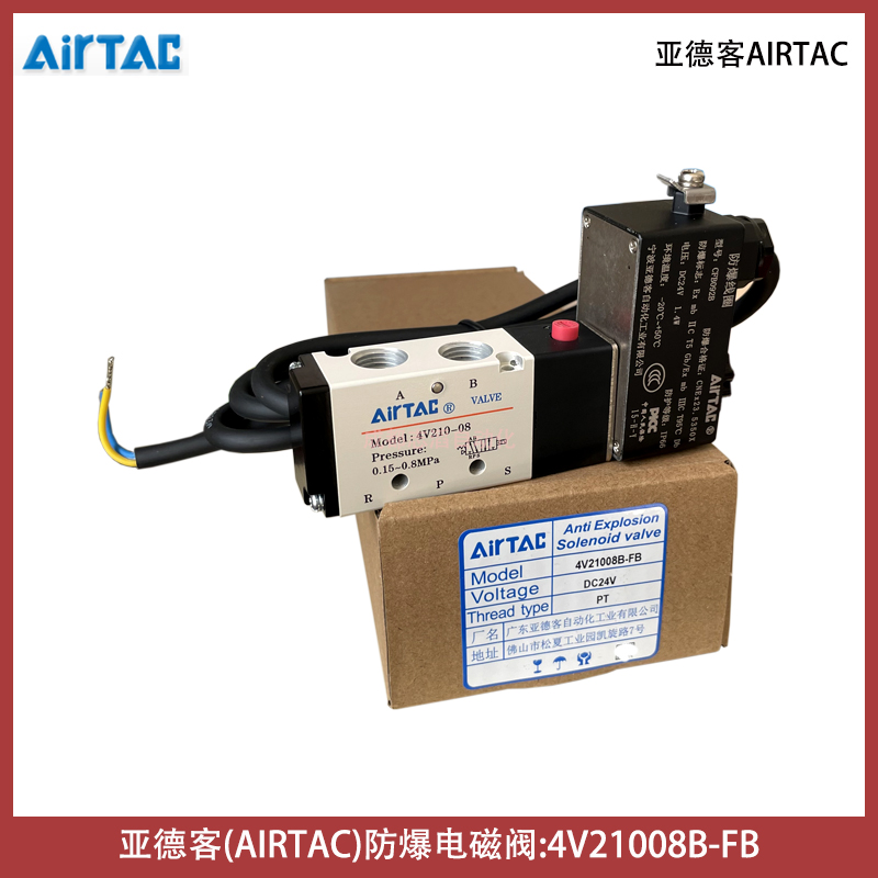 4V21008B-FB線圈型號CFB092B電壓24VDC亞德客AIRTAC防爆電磁閥技術參數簡介:工作介質空氣(經40um以上濾網過濾)、動作方式內部引導式或外部引導式、接管口徑進氣=出氣=PT1/4,排氣=PT1/8、有效截面積16平方毫米(CV=0.89)、位置數為2位5口、使用壓力范圍0.15-0.8mpa、保證耐壓力1.2mpa、工作溫度-20到70攝氏度、本體材料鋁合金、潤滑不需要用、動作頻率5次/秒、重量為0.22kg、配防爆型DC24V線圈(技術參數AMISCO、3009MD024W3、II2G Exmb IIC T5Gb、II2D Extb IIIC T95° IP66 Db、TUV IT 13 ATEX030、U=24VDC I=125mA、Ta=-50到50攝氏度)、產地為中國!