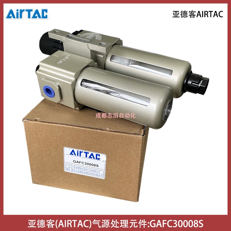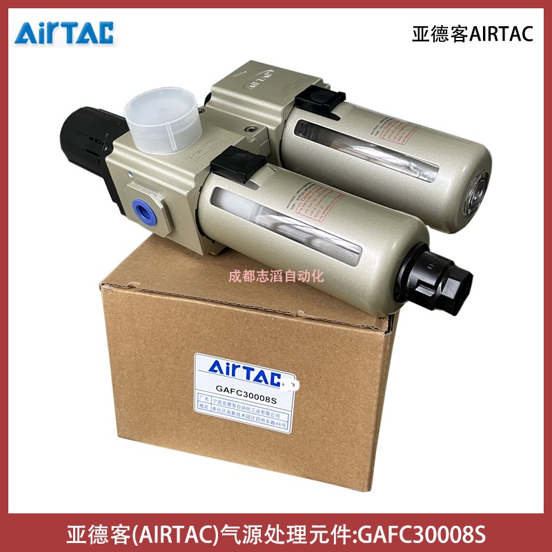 亞德客(AIRTAC)氣源處理元件A、B系列產品特性:結構輕巧緊湊,安裝使用方便、壓入式自鎖機構,可防止鎖定壓力受外界干擾而產生異動、壓力損失小,分水效率高、透明觀察罩,可直接觀察點油量大小、除標準形式外,另有低壓型可供選