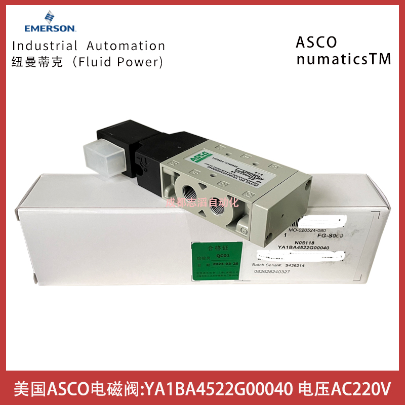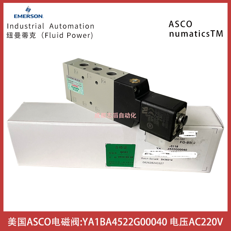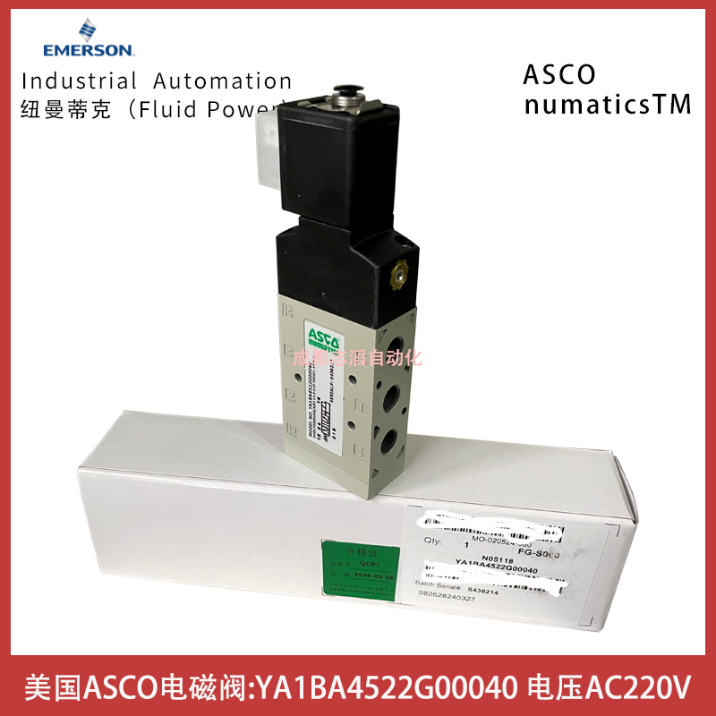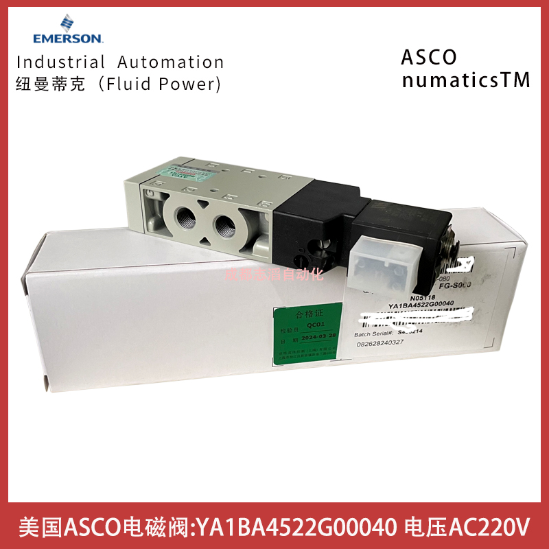 YA1BA4522G00040線圈電壓AC220V美國NUMATICS電磁閥ASCO控制元件技術參數簡介:功能2位5通、接口尺寸G1/8、驅動方式電控/彈簧復位、介質壓縮空氣、壓力范圍1-10bar、溫度范圍-20到60攝氏度、電壓電壓AC220V、線圈功率2.5伏安、貨期1周
