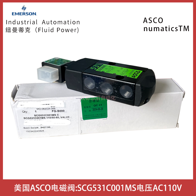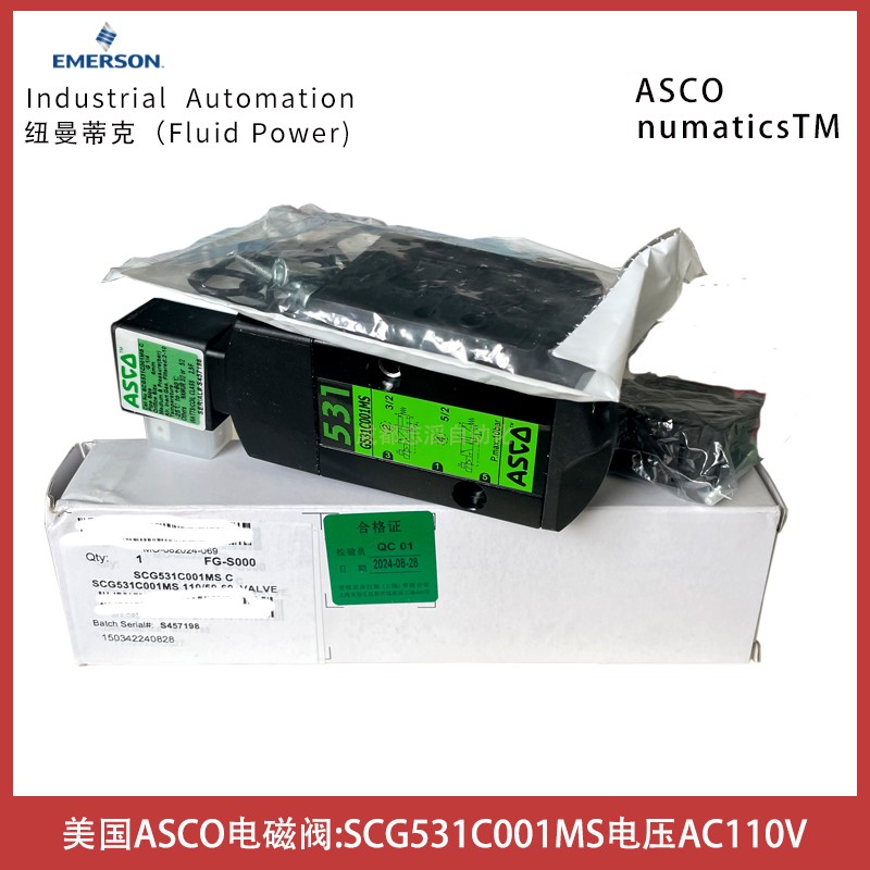 SCG531C001MS線圈電壓AC110V美國阿斯卡ASCO電磁閥普通不防爆技術參數簡介:接口尺寸G1/4、通徑6mm、流量系數0.95立方米/小時(15.5升/分鐘)、工作壓力范圍2-10bar、功耗RP、安裝方式NAMUR、功能3/2NC-5/2線圈和先導空氣驅動、彈簧復位(單穩態)、介質干凈空氣和惰性氣體、線圈SC(片狀端子接頭,帶進線格蘭,符合標準DIN43650,11mm,industry standard B,導線外徑6到8mm(型式01/03)、環境溫度范圍-10到+60攝氏度、安全規范EN60730、防護等級IP65、線圈電壓AC110V、啟動6伏安,維持3.5伏安、閥體材料鋁質,端蓋PBT、內部工件ZAMAK,不銹鋼,POM,鋁質、密封件NBR+PUR、動靜鐵芯不銹鋼、屏蔽環銅、流量AV在6bar時是1100l/min、特點-NAMUR型式的電磁閥配有螺紋連接口和貼面安裝接口、THREADED型式的電磁閥只具有螺紋連接口、所有的排氣口均為螺紋接口,可提供更好的環環境保護、特別適合要求潔凈的制藥和食品行業、可避免液體,粉塵或者其他雜質進入電磁閥、