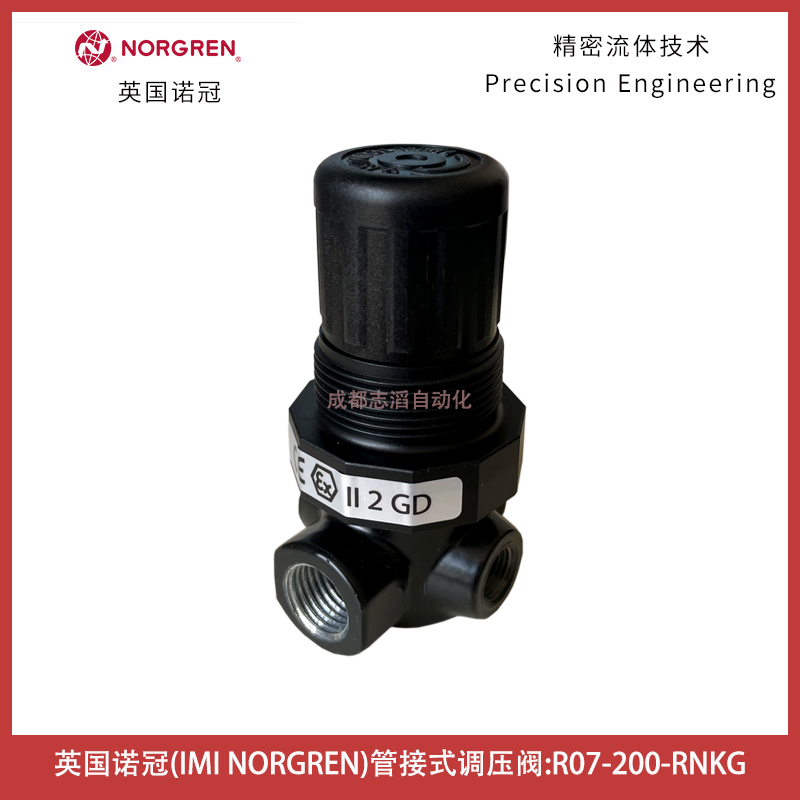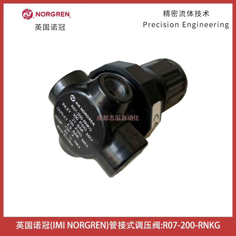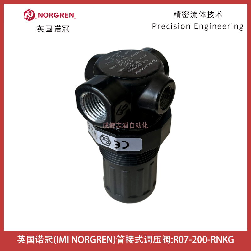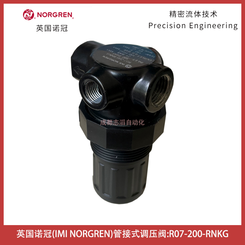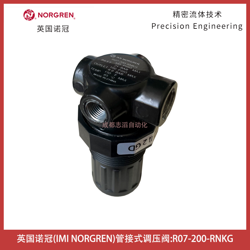 R07-200-RNKG英國諾冠NORGREN調壓閥管接式-IMI埃邁海隆HERION技術參數:規格尺寸G1/4、調壓范圍0.3-7bar、流量7l/s、閥體重量0.19kg!大量應用在超聲波設備、醫療行業(呼吸機設備)、以前產地為墨西哥、現在中國上海工廠組裝!!