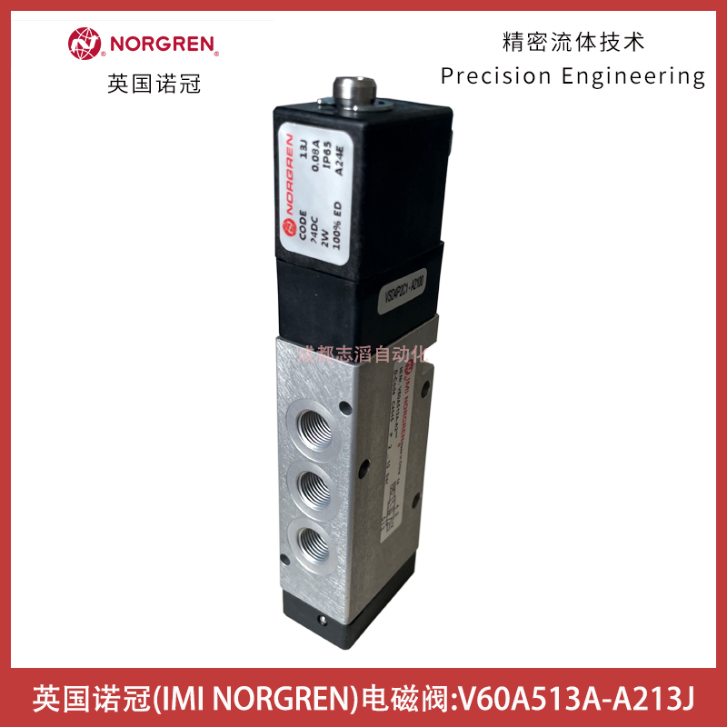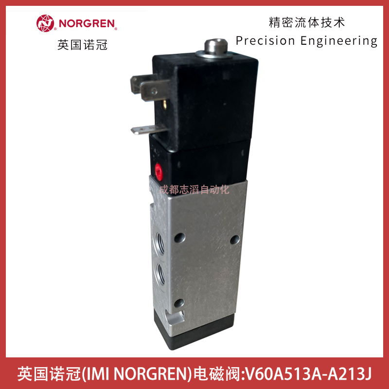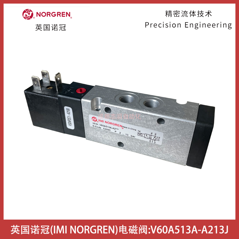 V60A513A-A213J電壓24VDC英國諾冠IMI NORGREN電磁閥-埃邁海隆技術參數簡介:接口尺寸G1/8、驅動方式為電控/氣復位、先導供氣為內先導、先導排氣尾非集中、流量為750l/min、工作壓力范圍為2-8bar、閥體中路為0.24kg、產地為中國、配諾冠普通線圈24VDC(型號為13J、工業線圈為22mm)!