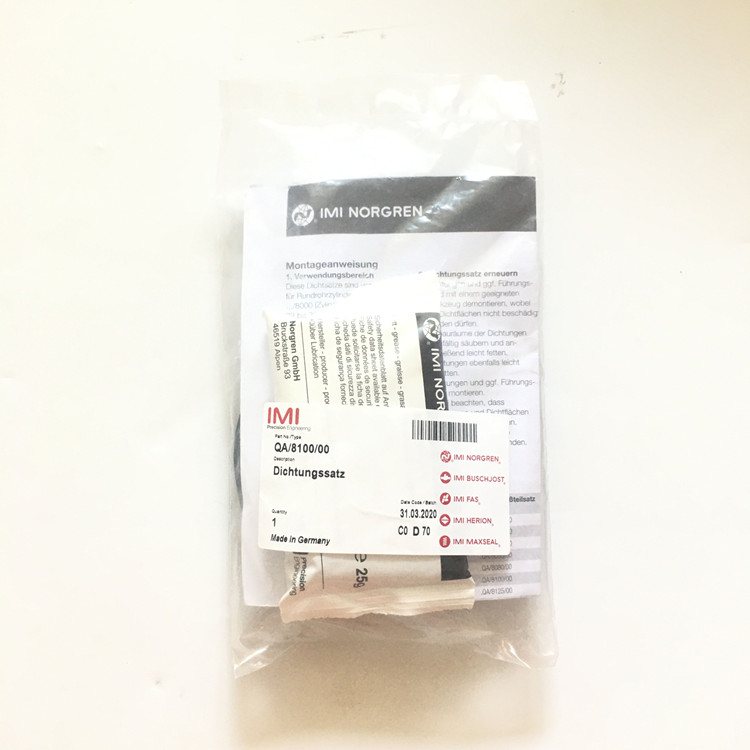 QA/8100/00英國諾冠(imi norgren)氣缸維修包筑路攪拌站大量使用:適用于諾冠(norgren)氣缸一下系列缸徑為100mm的、產地為德國、包含潤滑油、密封包!(ISO/VDMA型材氣缸PRA/181000,..../M,PRA/183000,....、/M系列單作用,雙作用式PRA/1820000系列、ISO/VDMA氣缸RA/8000/M系列!)