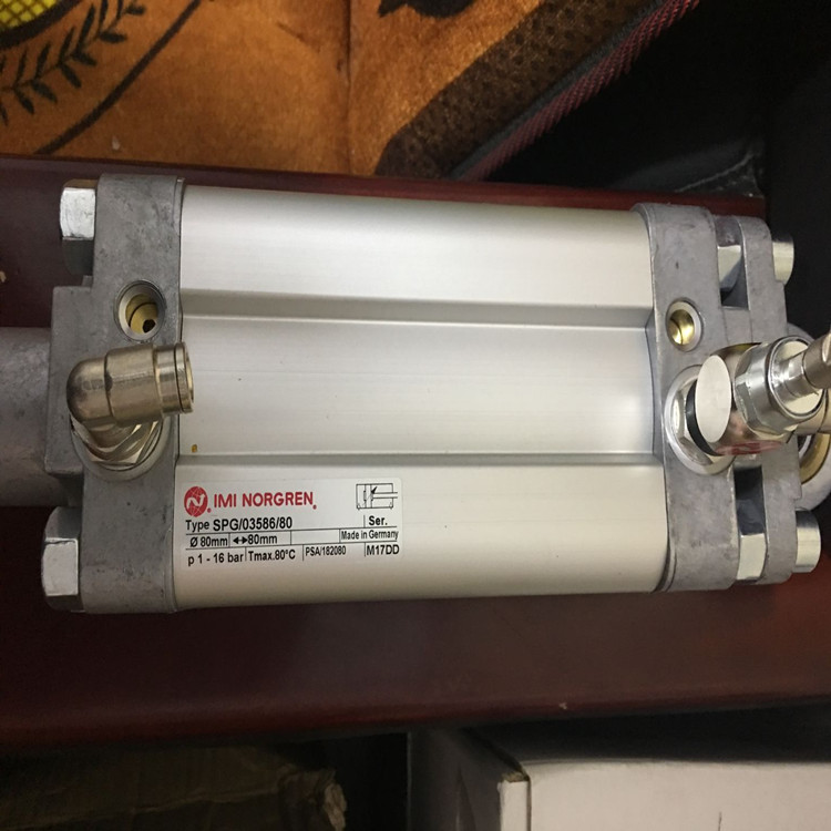 英國IMI NORGREN(諾冠)訂制型(紡織行業)氣缸技術參數簡介:SPG/03586/80(為PSA/182080系列氣缸加節流閥和不銹鋼接頭組合而成),工作壓力范圍1-16公斤、應用在紡織機械設備、氣缸行程80mm、缸徑80mm、溫度可達80攝氏度、氣缸產地德國、