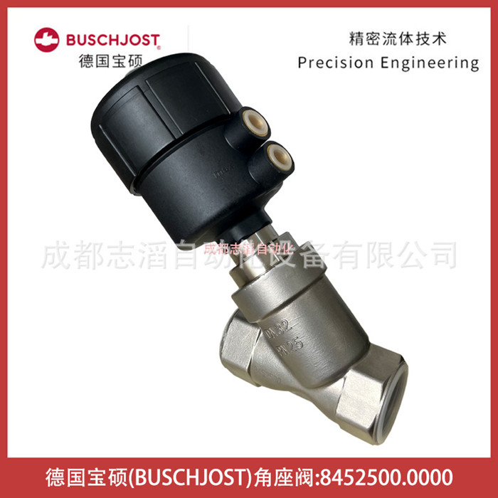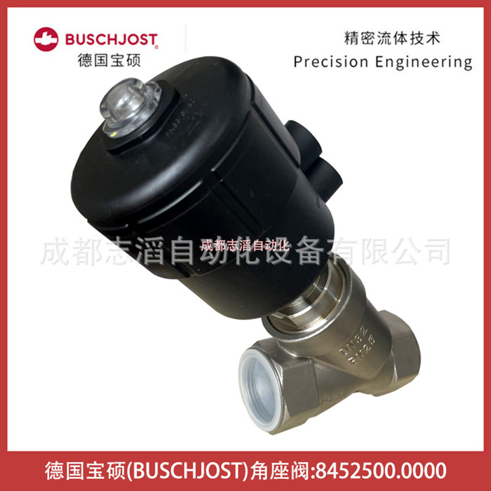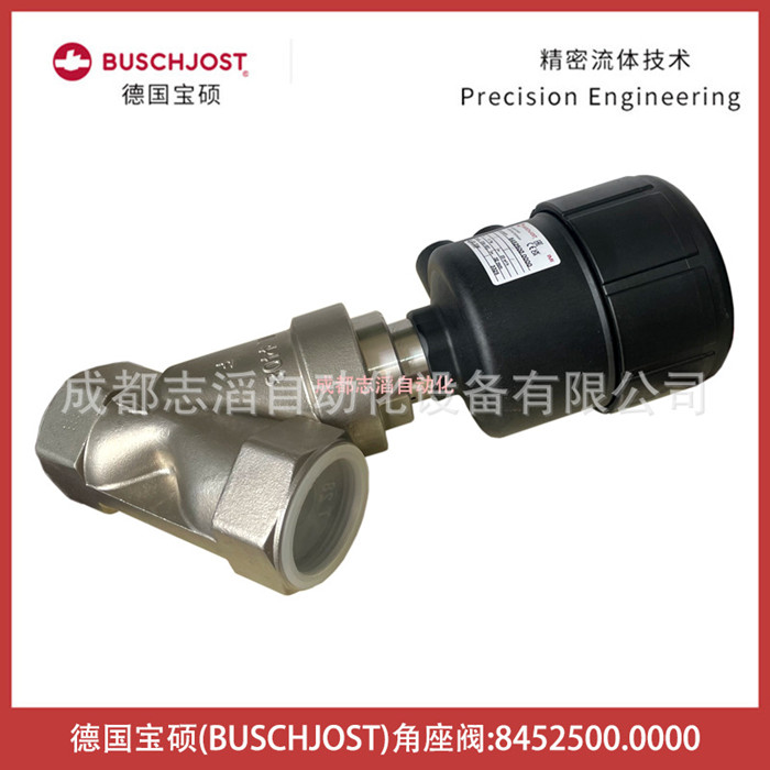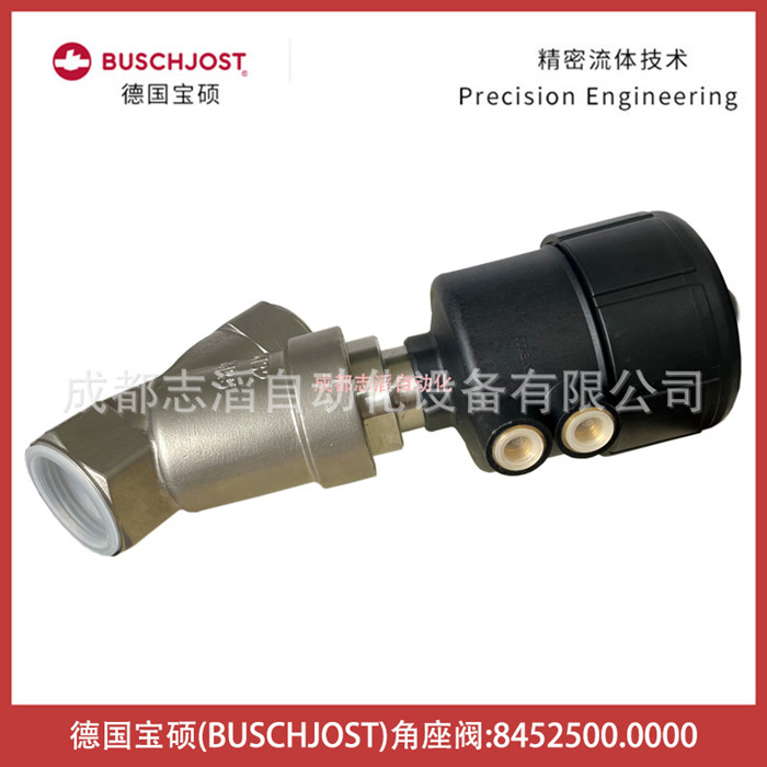 8452500.0000德國寶碩角座閥BUSCHJOST氣動控制元件技術參數簡介:接口尺寸1.25寸、通徑32mm、流量23立方米/小時、工作壓力0-7bar(0-101PSI)、重量2.4kg、環境溫度-10到60攝氏度、流體溫度-10到180攝氏度、介質中性氣體或者液體、切換功能常閉、按照位置可選、先導壓力3.5-10bar、主體材料不銹鋼、密封面PTFE、產地德國、貨期10-12周