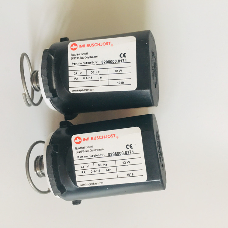 8298000.8171.024.00德國寶碩 IMI BUSCHJOST電磁閥(除塵閥、脈沖閥、淹沒閥)線圈技術參數:功率損耗為12W、電流為500mA、防護等級為IP65、環境溫度范圍-20到85攝氏度、流體耐溫100攝氏度、電氣連接DIN43650A型、產地為德國、IMI BUSCHJOST(寶碩)電磁閥線圈現貨產品-大量應用在環保除塵行業(水泥廠家、鋼鐵廠家)!