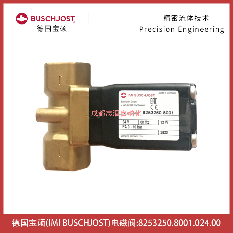 8253250.8001.024.00德國寶碩(BUSCHJOST)隔膜閥/電磁閥技術參數簡介:接口尺寸G1/2、通徑10mm、KV值1.7立方米/h、工作壓力0-10bar、閥體重量0.6kg、配寶碩普通線圈8001(技術參數:功耗12W、溫度-40攝氏度)、產地為德國!