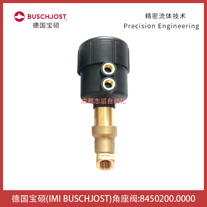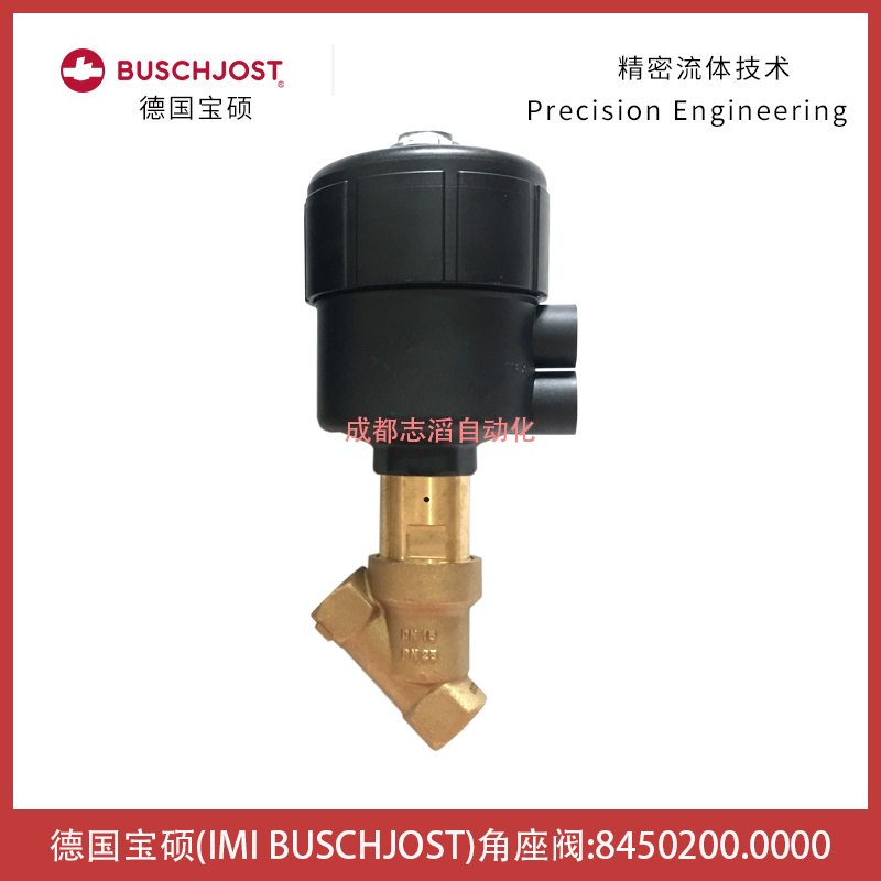 8450200.0000德國寶碩(IMI BUSCHJOST)壓力驅動角座閥技術參數簡介:流通通經15mm、接口尺寸1/2、工作壓力0-10bar、先導壓力3.5-10bar、KV值為4.8立方米/h、重量為1.4kg、產地為德國!
