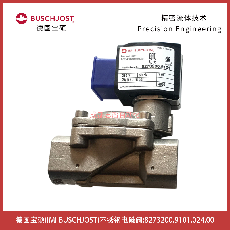 德國寶碩(IMI BUSCHJOST)2位2通流體閥82730系列技術(shù)規(guī)格:適用于弱腐蝕性氣體或液體的電磁閥、切換功能常閉、流向固定、內(nèi)螺紋G1/4到G2或1/4NPT到2NPT、工作壓力0.1-16bar、壓降0.1bar至少、溫度流體為(-10到90攝氏度),環(huán)境為(-10到50攝氏度)、安裝位置根據(jù)需求而定,建議電磁線圈垂直于頂部安裝;材料閥體-不銹鋼、閥座密封件丁晴橡膠、內(nèi)部部件不銹鋼P(yáng)VDF、對于污染的流體,建議在上游安裝過濾器