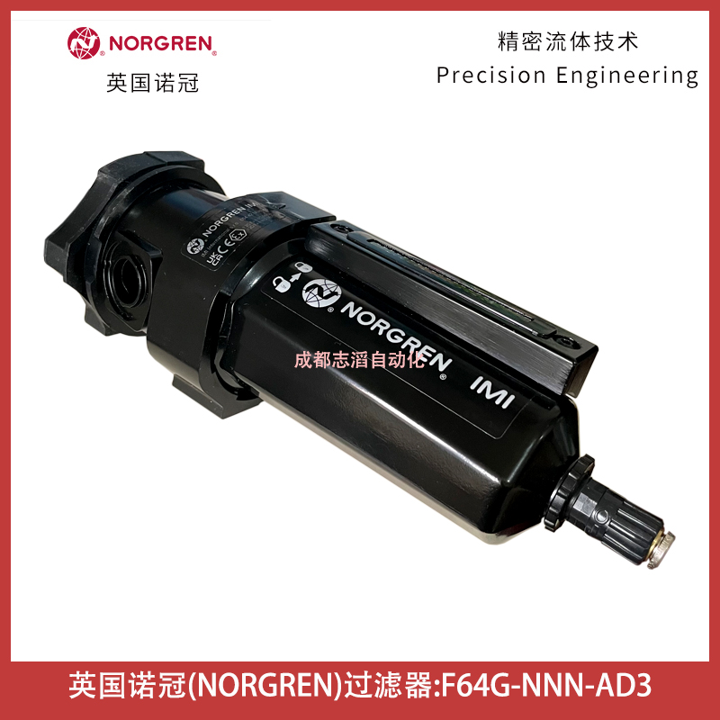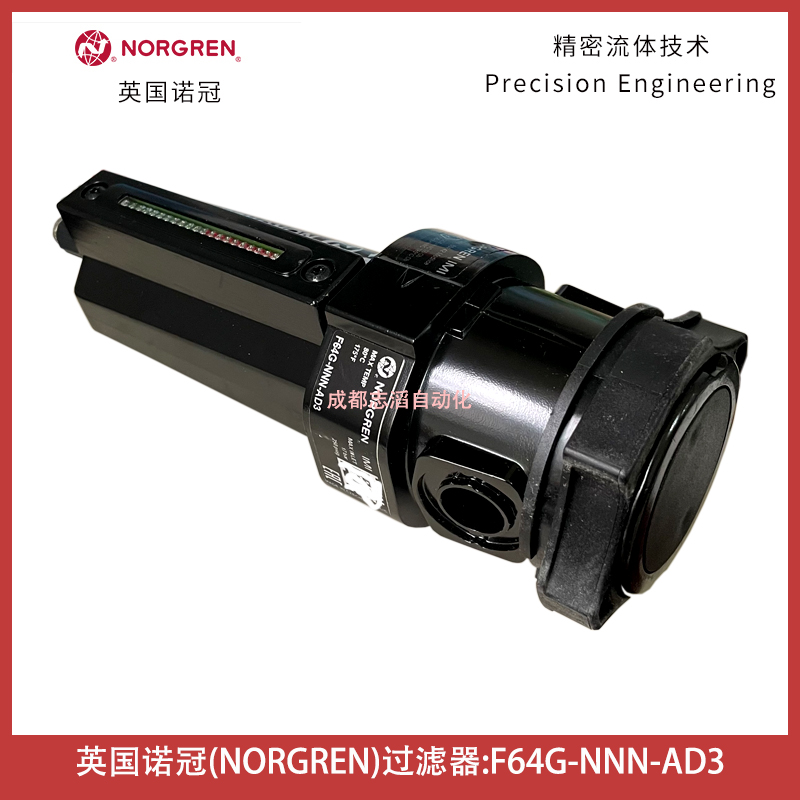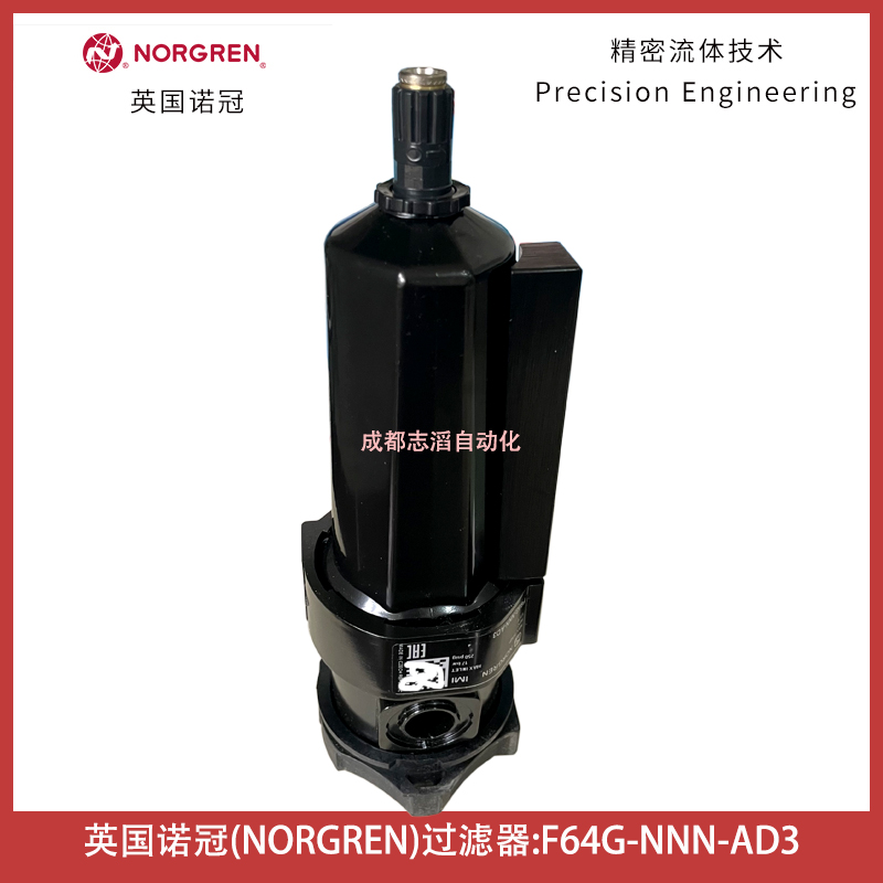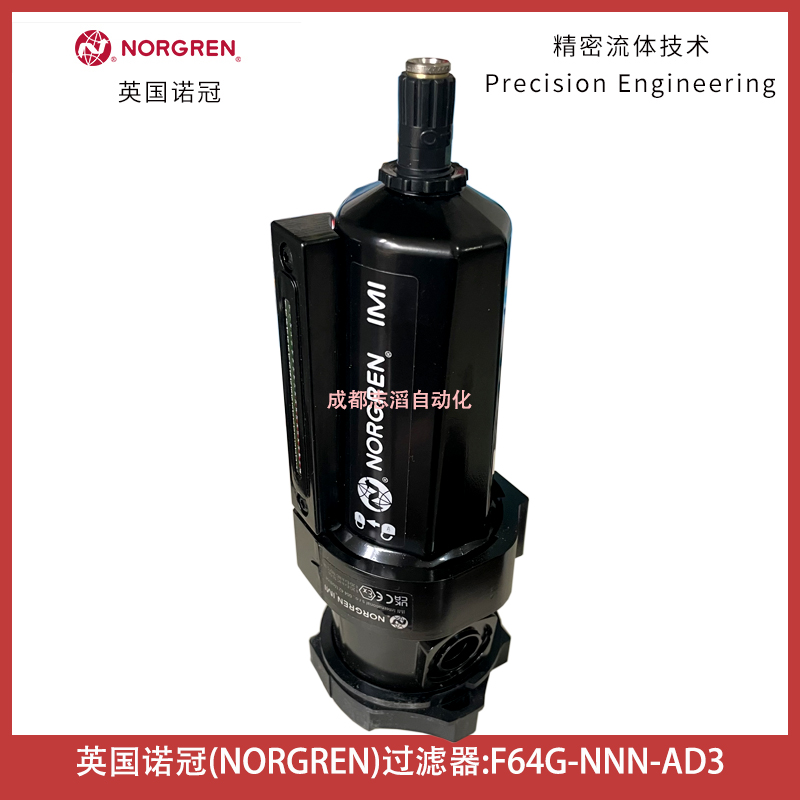 F64G-NNN-AD3英國諾冠過濾器NORGREN空氣處理設備技術參數簡介:氣口尺寸需要配框架、螺紋ISO G直螺紋、不帶濾芯壽命指示器、自動排水、帶液位指示器金屬杯、過濾精度40um、流量75L/min、重量1.72kg、維修件4380-200、濾芯4338-02(濾芯精度40um)