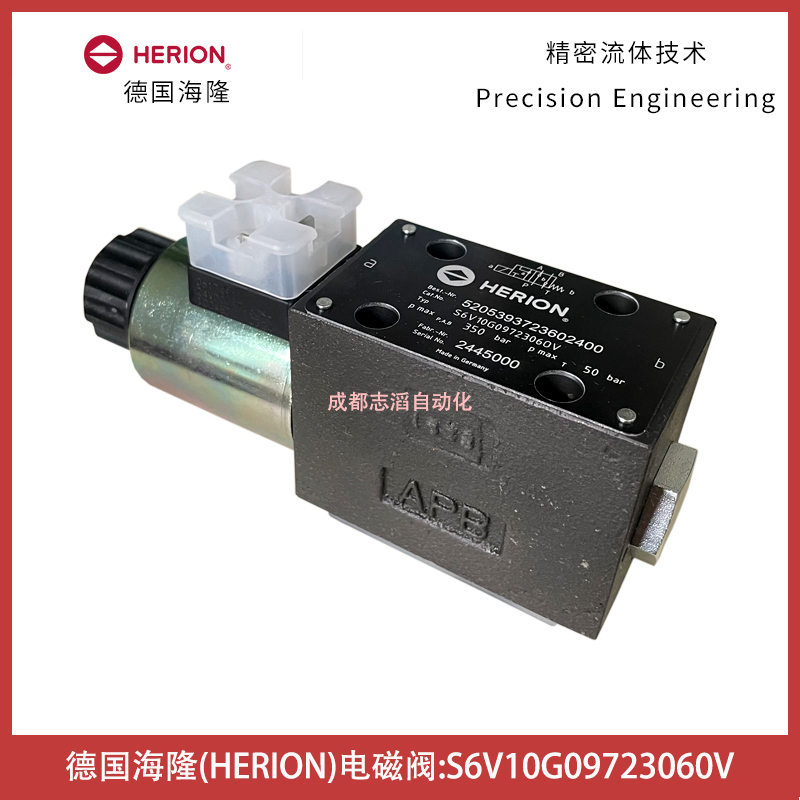 S6V10G09723060V德國海隆HERION電磁閥BEST-NR5205393723602400技術參數簡介:功能2位4通、驅動方式電控/彈簧復位、接口尺寸6mm、工作壓力Pmax(P,A,B)壓力可達350bar、Pmax(T)壓力可達50bar、產品型號S6V10G09723060V、產品訂貨號5205393723602400、線圈電壓24VDC、產地德國
