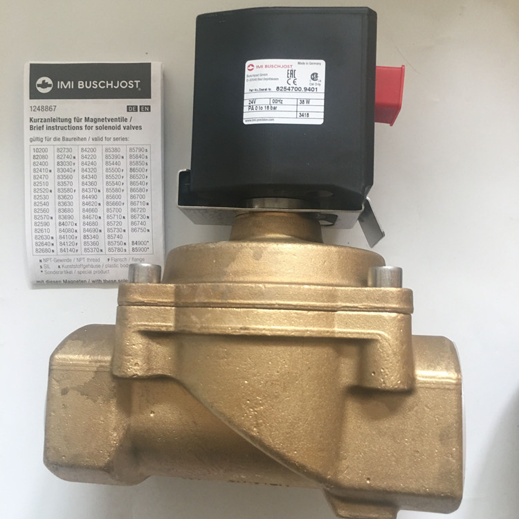 8254700.9401.024.00德國寶碩(IMI BUSCHJOST)電磁閥技術參數(shù)簡介:接管尺寸G2、通徑為50mm、KV值41立方米/h、工作壓力范圍0-16bar、閥體(材料為黃銅)重量5.4kg、配寶碩線圈9401(線圈功率為38W)、線圈電壓為24VDC、產(chǎn)地為德國!