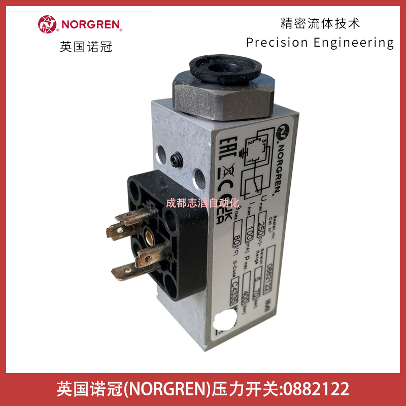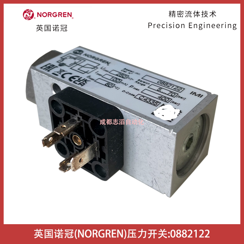 0882122英國諾冠壓力開關NORGREN-氣動控制元件技術參數簡介:型號0882122、電壓可達250伏、工作壓力范圍5-70bar、電流可達100毫安、工作壓力可達400bar、溫度可達80攝氏度、貨期10-12周、