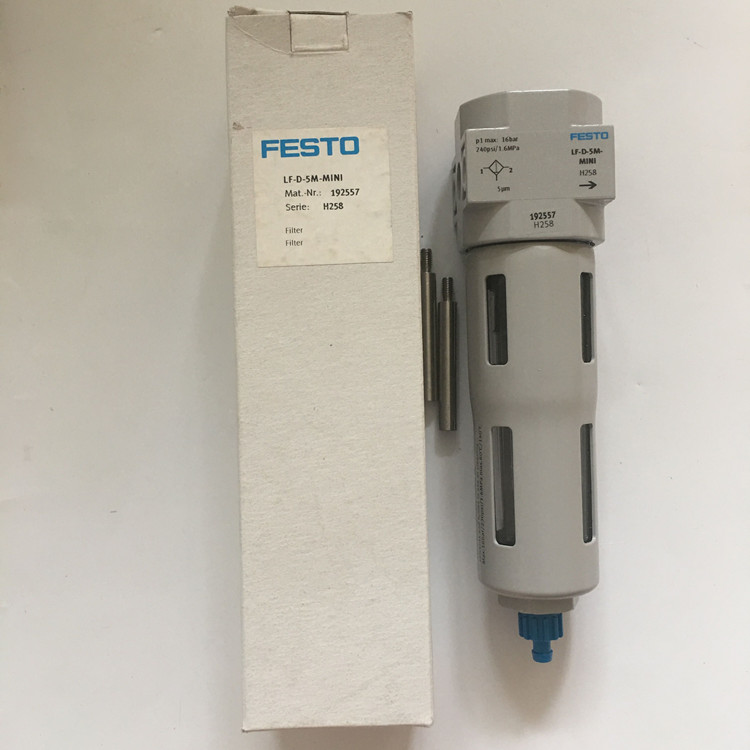 LF-D-5M-MINI德國費斯托(festo)過濾器技術參數:規格Mini、短型號代碼LF、系列D、安裝位置垂直正負5°、過濾等級5um、冷凝水排放裝置手動旋轉、設計燒結式過濾器,帶冷凝液分離器、大冷凝容積22ml、保護罩金屬保護罩、符號00991519、工作壓力0-16bar、工作介質壓縮空氣,惰性氣體、耐腐蝕等級 CRC2 - 中等耐腐蝕能力、輸出口空氣純凈度等級壓縮空氣,惰性氣體、介質溫度/環境溫度-10到60攝氏度、產品重量250g、安裝方式管式安裝帶附件、氣接口1/2為底座、材料說明RoHS 合規、過濾器材料PE、外殼材料壓鑄鋅、碗罩材料PC
