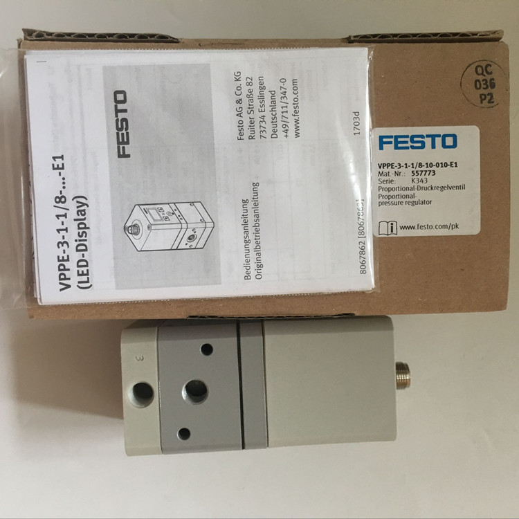 VPPE-3-1-1/8-10-010-E1德國費斯托比例閥FESTO比例閥557773技術參數:訂貨號557773、閥功能3位比例閥、氣動接口G1/8、壓力控制范圍0.1-10bar、壓力輸入6-11bar、額定流量1250l/min!、KC 標記KC-EMV、公稱通徑,氣源5mm、氣源壓力 1 MPa(0.6 MPa ... 0.8 MPa)、工作壓力0.8mpa、壓力調節范圍 MPa(0.015 MPa ... 0.6 MPa)、大壓力遲滯0.015map、公稱通徑,排氣2.5mm、短型號代碼VPPE、驅動方式電控、密封原理軟密封、安裝位置可選, 垂直安裝、設計先導活塞減壓閥、短路電流額定值適用于所有電氣連接、安全注意事項安全位置 VPPE:如果電源電纜中斷,輸出壓力將不受調節、符號00995303、反極性保護適用于所有電氣連接、閥功能三通比例壓力閥,常閉、工作壓力≤ 8 bar、壓力調節范圍0.15 bar ... 6 bar、入口壓力 17-8bar、大壓力遲滯0.15bar、標準標稱流量850l/min、關閉時間1300ms、打開時間550ms、工作電壓范圍 DC(21.6 V ... 26.4 V)、大電流消耗150毫安、大電源功耗3.6W、殘余波紋10%、設定點/實際值電壓型 0 - 10 V、電壓型 0 - 10 V、工作介質壓縮空氣,符合 ISO 8573-1:2010 [7:4:4]、工作和先導介質說明不可用潤滑介質工作、CE 認證(見合格聲明-符合歐盟電磁兼容性指令、耐腐蝕等級 CRC2 - 中等耐腐蝕能力、介質溫度/環境溫度10 °C ... 50 °C、防護等級IP65、認證RCM 商標,c UL us 認證 (OL),產品重量445g、電氣接4針,M12X1,插頭圓形結構、安裝方式帶通孔、接口1和2為G1/8、材料說明RoHS 合規、外殼材料精制鋁合金、膜片材料丁晴橡膠