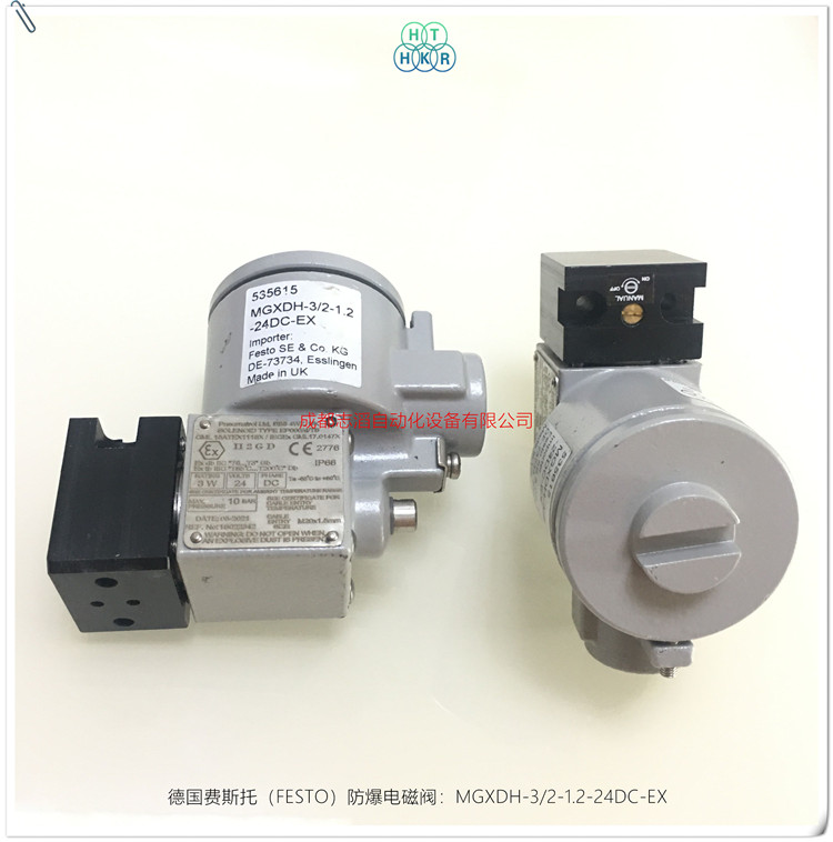 MGXDH-3/2-1.2-24DC-EX德國費斯托(FESTO)防爆電磁閥技術參數簡介:閥功能兩位三通,常閉,單穩(wěn)態(tài)、驅動方式電控、工作壓力-0.09到0.8 MPa、設計開關閥、復位類型彈簧復位、CE 認證(見合格聲明)符合歐盟防爆指令 (ATEX)、歐盟境外防爆認證EPL Gb (IECEx),EPL Db (IEC-EX),EPL Db (CN),EPL Gb (CN)、證書簽發(fā)機構ATEX: CML 15 ATEX 1119X,IEC: IECEx CML 17.0147X,CCC-Ex: 2020322307001701、ATEX 氣體類別II2G、ATEX 防塵類別II2D、氣體防爆阻燃類ATEX: Ex db IIC T5 Gb,CCC-Ex: Ex d IIC T3/T4 Gb、防塵防爆阻燃類型ATEX: Ex tb IIIC T100°C Db,CCC-Ex: Ex tD A21 IP66 85°C/T200°C、防爆環(huán)境溫度ATEX: -65°C <= Ta <= +55°C,CCC-Ex: -20°C <= Ta <= +40°C、防護等級IP66、短型號代碼MGXDH、手控裝置鎖定式、流向不可逆、工作介質壓縮空氣、環(huán)境溫度負20到80攝氏度、耐腐蝕等級 CRC2 - 中等耐腐蝕能力、安裝方式CNOMO、材料說明含有油漆潤濕缺陷物質RoHS 合規(guī)