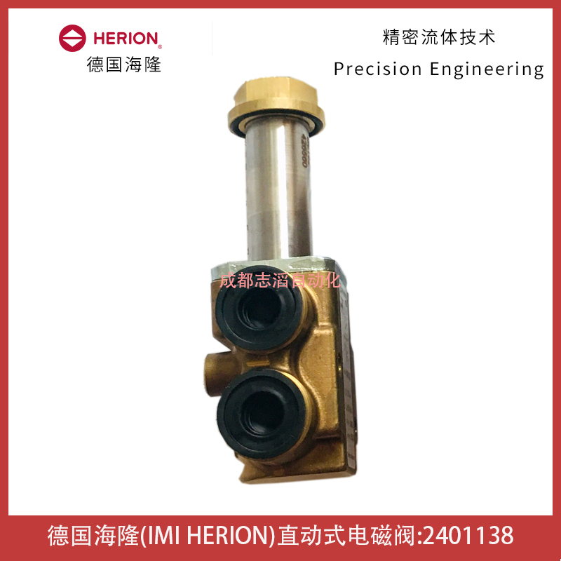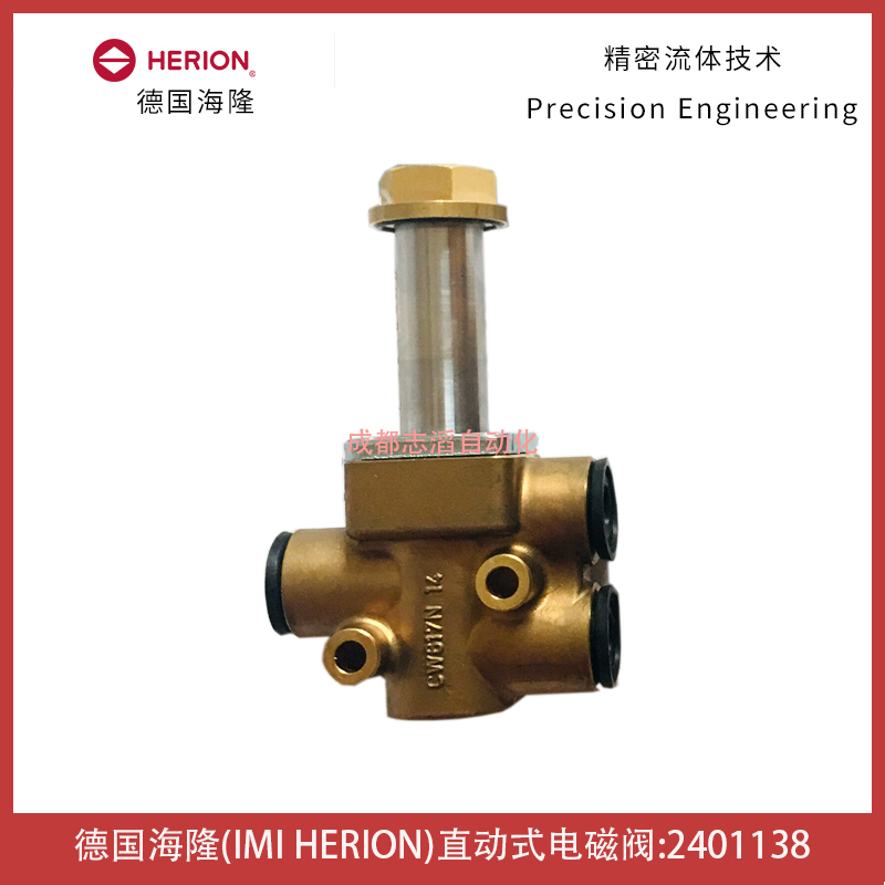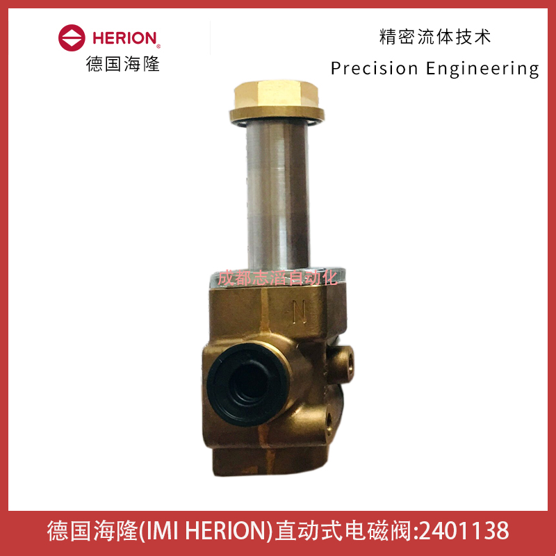 2401138德國海隆IMI HERION電磁閥技術參數:管接式的閥、黃銅閥體、電磁線圈組A+B、接口尺寸為1/4NPT、工作壓力0-10bar、材質閥座密封圈NBR、手動應急控制無、閥體重量0.65kg!