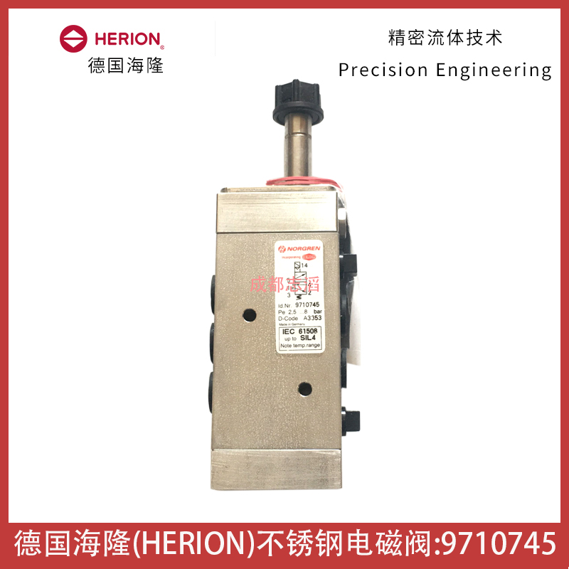 9710745.0000.000.00德國海隆(IMI HERION)不銹鋼電磁閥參數(shù)簡介:接口尺寸為1/4NPT、功能為5/2、工作方式電控/彈簧、Kv值為1.3立方米/h、閥體重量為1.8kg、產(chǎn)地為德國、應用在石化行業(yè)閥門控制