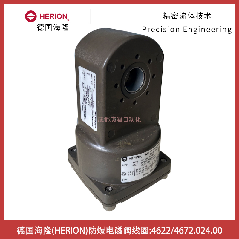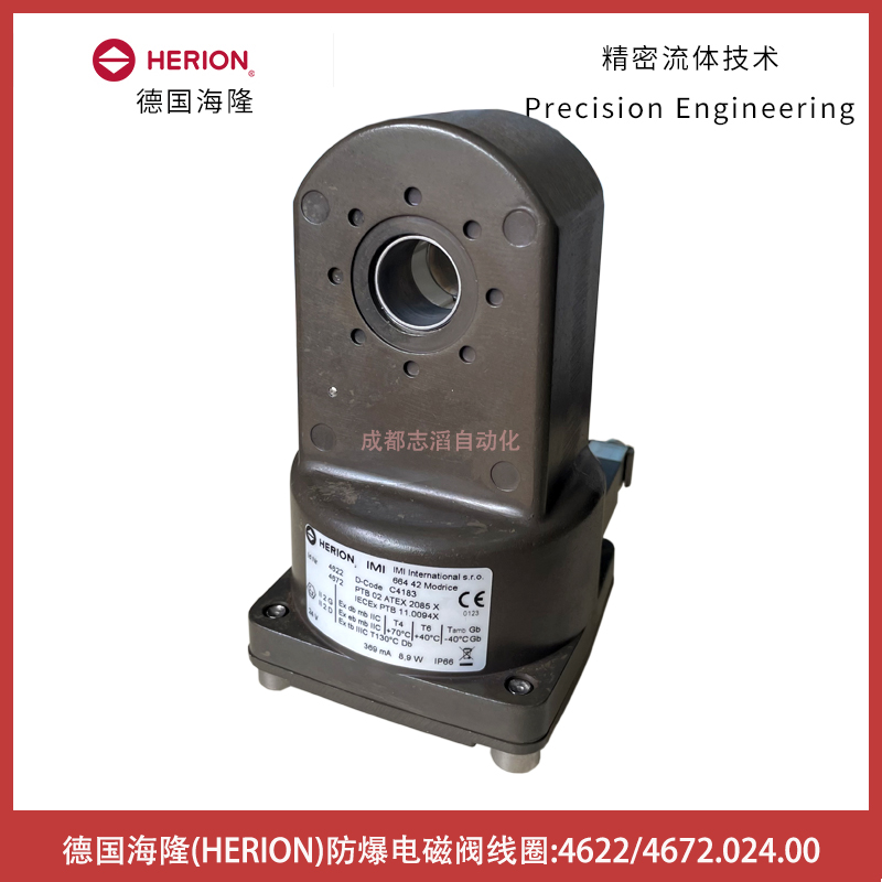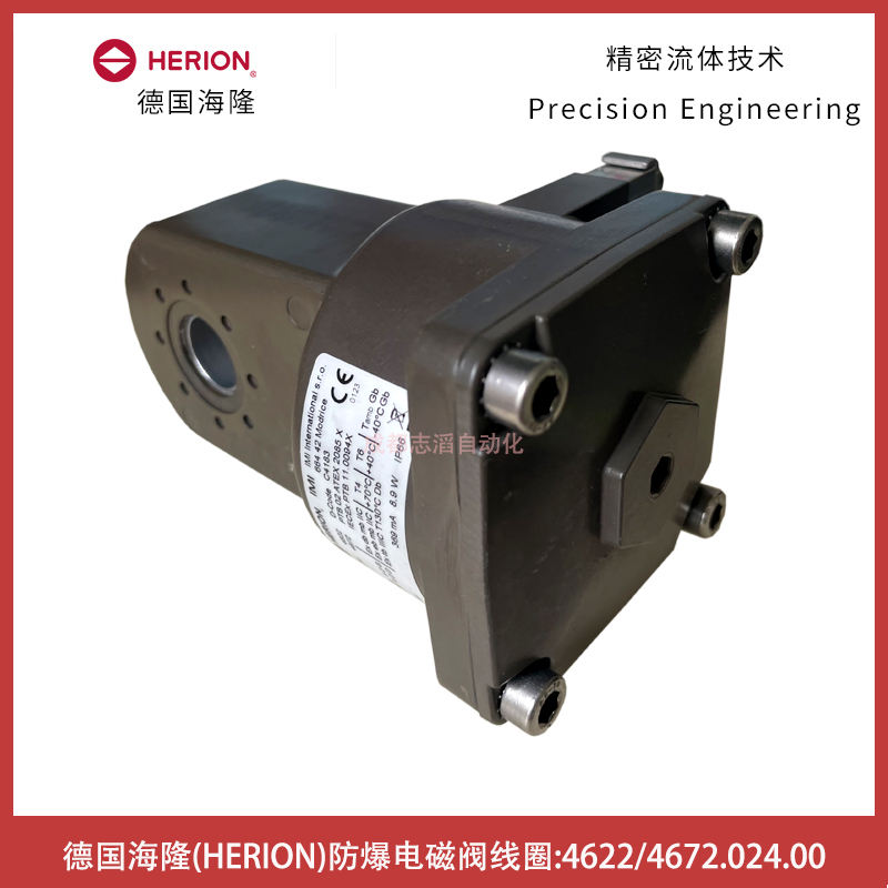 4672/4622.024.00德國海隆IMI HERION防爆電磁閥線圈-埃邁諾冠NORGREN技術參數簡介:線圈功耗8.9瓦、電流369毫安、EX防護類型II2G/II2D、防護等級EEX MDIICT4/T5、類別II2G(氣體)-40到正60攝氏度(T4),電氣接口M20X1.5、負40到正60攝氏度(T4)、線圈重量0.8千克、套管直徑16毫米、產地捷克