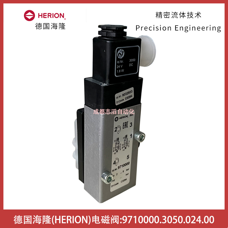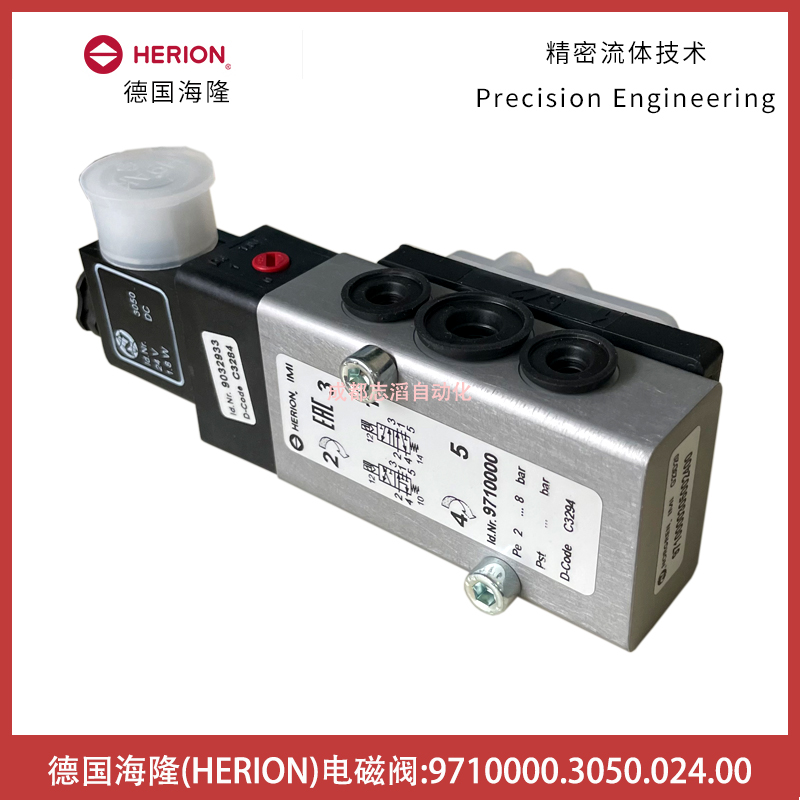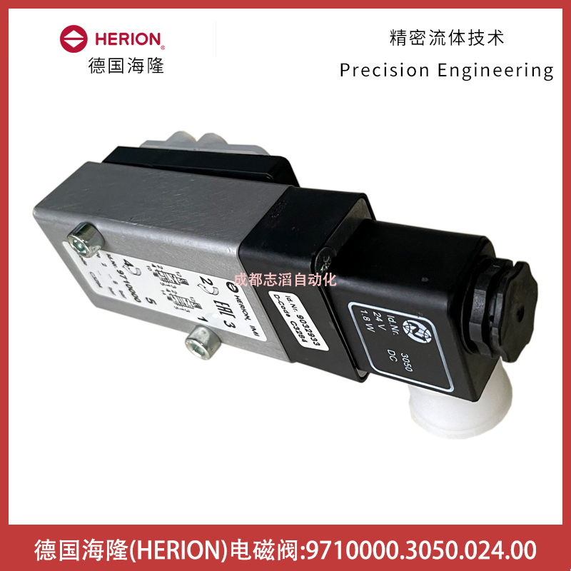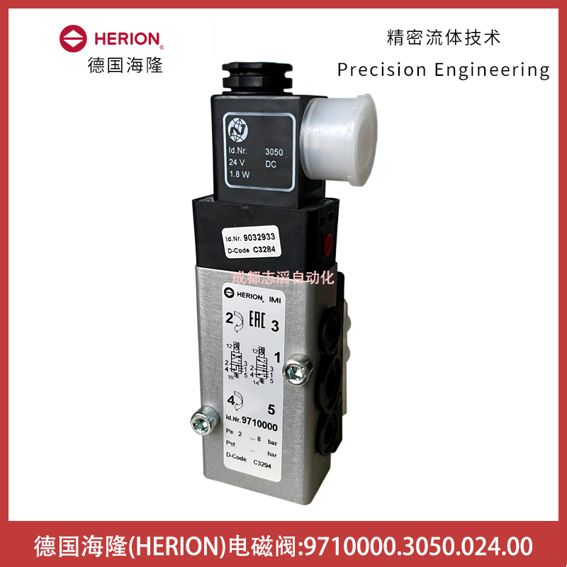 9710000.3050.024.00德國海隆電磁閥HERION先導電磁控制閥9710000技術參數:接口尺寸1口為G1/4、3和5口為G1/8、2和4為法蘭、功能NC、驅動方式電控/彈簧、KV值為0.75立方米/小時、閥體重量0.25KG、配1個3050.024.00(線圈功率1.7W、防護等級IP65帶電氣插頭、環境及流體溫度-40到50攝氏度、電氣連接DIN43650 B型、線圈重量0.054kg)的線圈!