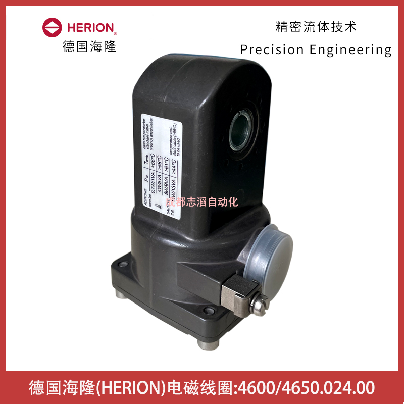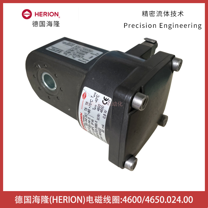 4600.024.00德國海隆HERION電磁閥防爆線圈4650.024.00-IMI埃邁諾冠技術參數說明:功率損耗0.8W、電流33ma、防護等級IP66(帶接線盒)、T5(-40到80)攝氏度、T6(-40到70)攝氏度、電氣接口1/2NPT、產地為德國、線圈重量為0.8kg!