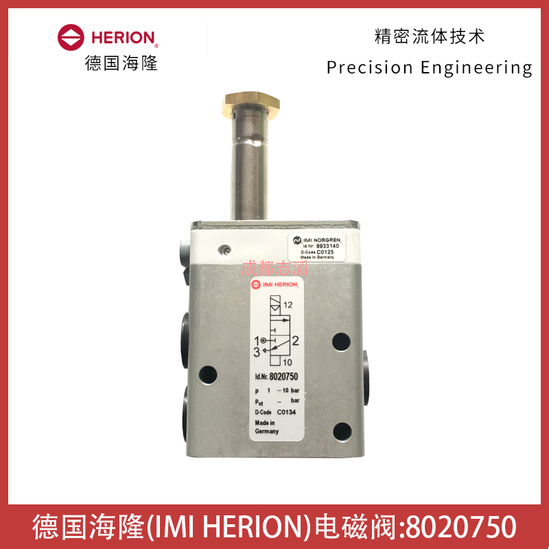 8020750德國海隆(IMI HERION)電磁閥技術參數:接口尺寸G1/4、NC、流量1200l/min、工作壓力1-10bar、響應時間20ms、閥體重量0.4kg、產地為德國!