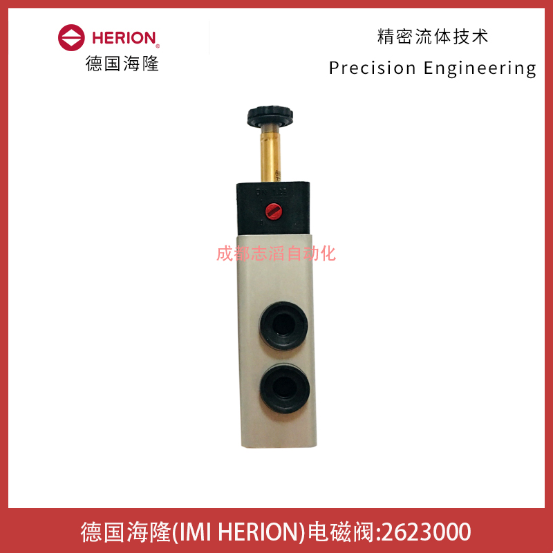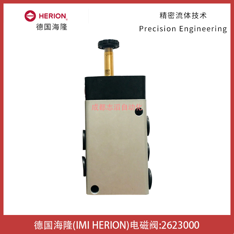 2623000德國海隆IMI HERION電磁閥參數:接口尺寸G1/4、功能為2位5通、電控氣復位、通徑6mm、工作壓力1-10bar、流量為1200L/MIN、閥體重量為0.4kg、產地為德國!