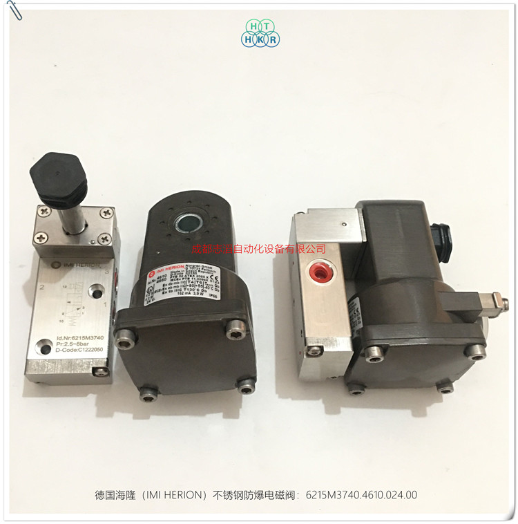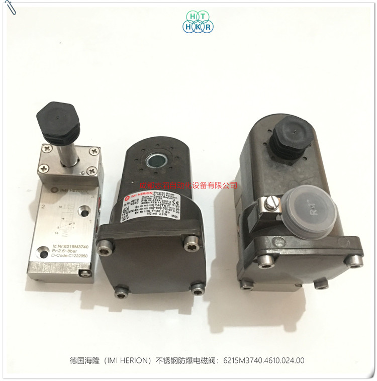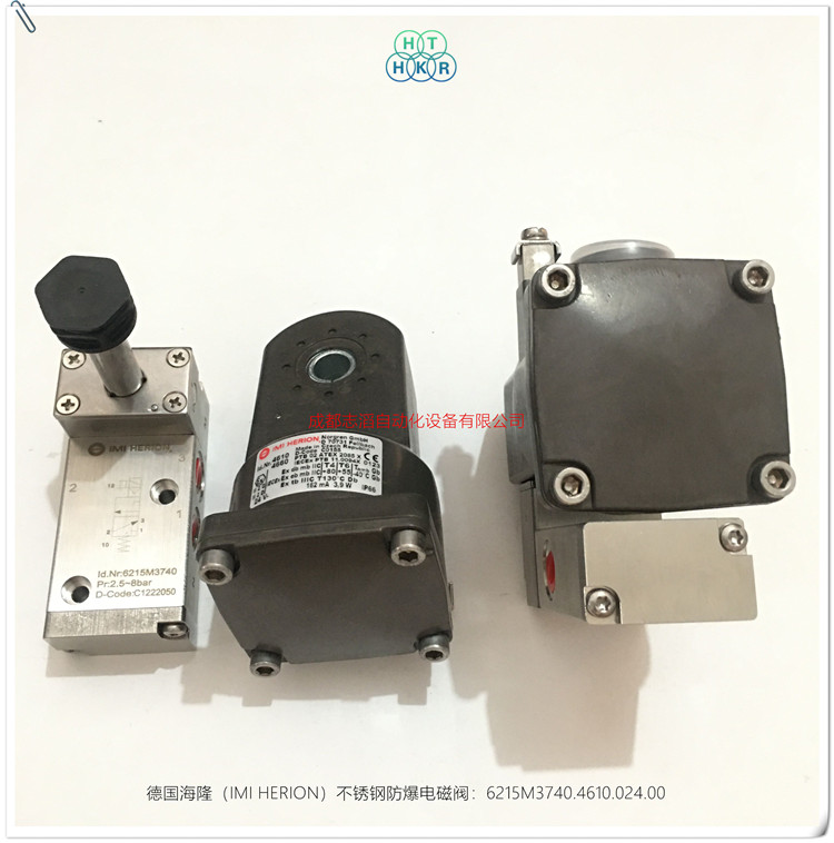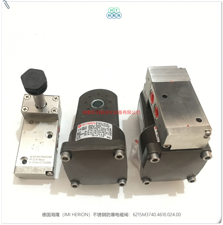 6215M3740.4610.024.00德國海隆(IMI HERION)不銹鋼防爆電磁閥技術參數簡介:功耗為M中等功耗(3.9W)、功能2位3通彈簧復位管接式、閥體材料為不銹鋼、接口尺寸為G1/4、手動控制為1/4圈旋轉手動控制、配海隆防爆線圈4610(功耗3.9W、額定電流162MA、防護等級IP66帶電氣接頭、防爆ATEX類別II2 G Ex D mb IIC T4/T6 Gb,II2 G Ex e mb IIC T4/T6 Gb , II2 D Ex tb IIIC T13攝氏度Db、環境及流體溫度T4(-40到80攝氏度)T6(-40到55攝氏度),-40到80攝氏度、電氣接口1/2NPT、線圈重量0.8kg、