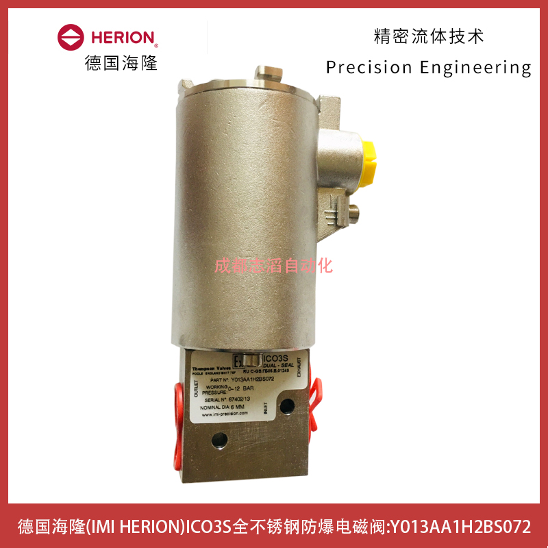 Y013AA1H2BS072德國海隆(IMI HERION)ICO3S直動電磁驅動提升閥技術優勢:接口尺寸1/4-1/2(ISO G/NPT)NAMUR或模塊、直動式電磁閥、高流量、可達進口壓力12bar、高可靠壽命長,適合一次性安裝、控制氣動或液壓設備!
