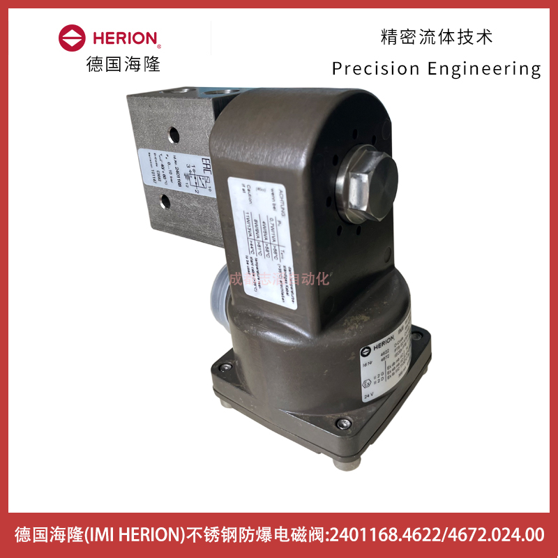 2401168.4622/4672.024.00德國海隆IMI HERION不銹鋼防爆電磁閥技術參數簡介:閥體材料不銹鋼(1.4404)適用于腐蝕環境、2位3通、管接式、接口NPT1/4、電磁線圈組A、產地德國、工作壓力(0-10)bar、閥座密封件材質為硅橡膠、閥體重量0.65、線圈4622/4672.024.00(線圈功耗8.9瓦、電流369毫安、EX防護類型II2G/II2D、防護等級EEX MDIICT4/T5、類別II2G(氣體)-40到正60攝氏度(T4),電氣接口M20X1.5、負40到正60攝氏度(T4)、線圈重量0.8千克、套管直徑16毫米、產地捷克)!應用行業:石油化工行業閥門控制!