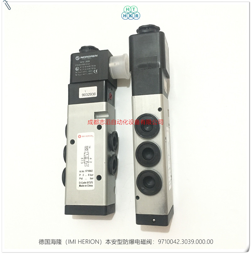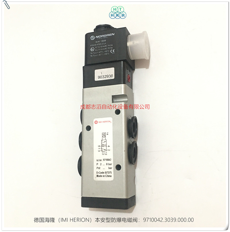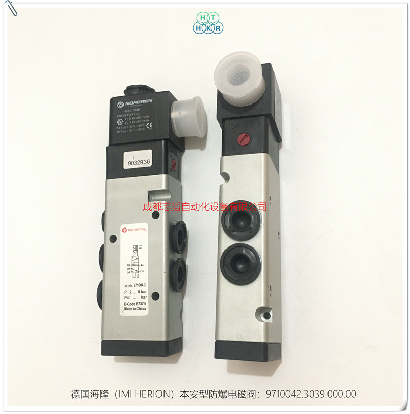 9710042.3039.000.00德國海隆(herion)本安電磁閥技術參數:產地德國、接口尺寸1/4NPT、功能2位5通NC、工作壓力2-8bar、流量750l/min、閥體重量0.25kg、KV值0.75立方米每小時、配海隆本安等級線圈3039(用于本安型電路的電磁線圈、防護等級EEXIAIICT6、線圈標稱阻值275歐姆、切換電流27毫安、線圈阻值330歐姆、終端電壓13.7伏、環境溫度范圍負40到正50攝氏度、流量溫度正50攝氏度、線圈重量0.85千克、)線圈默認電壓為24V直流