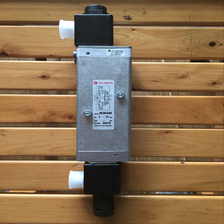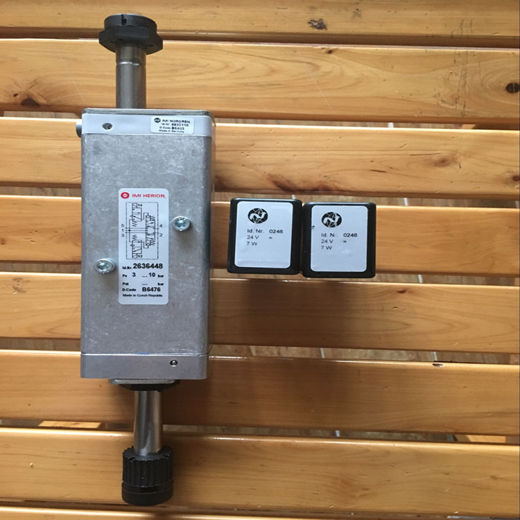 2636448.0246.024.00德國海隆(IMI HERION)電磁閥技術參數簡介:功能2位5通、驅動方式電控/電控、接口尺寸為G1/4、工作壓力范圍3-10公斤、流量950升每分鐘、切換時間40毫秒、手動應急控制按鈕、不帶線圈重量1千克、配海隆普通線圈0246(技術參數:線圈功耗8瓦、電流331毫安、防護等級IP65帶電氣接頭、環境及流體溫度范圍負25到正60攝氏度、流體可達80攝氏度、電氣接口DINEN175301-803A型、線圈重量0.15千克、產地捷克)