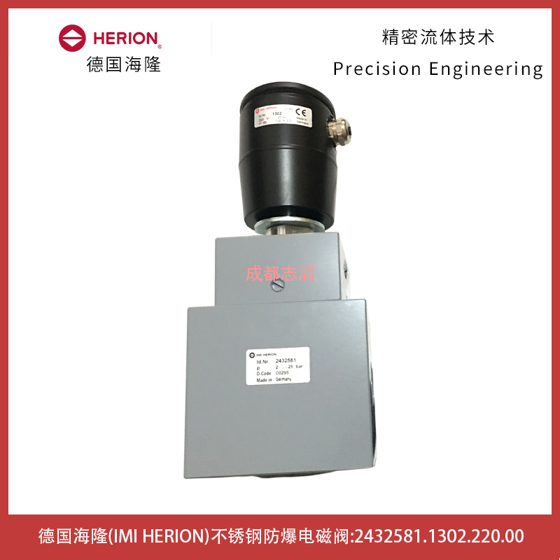 2432581.1302.220.00德國海隆電磁閥IMI HERION電磁閥技術參數簡介:品牌德國海隆IMI HERION、型號為2432581、工作壓力范圍2-25bar、D-Code為B8373、產地為德國、應用行業石油化工行業、需要配合海隆的線圈才可以使用!1302.220.00德國海隆IMI HERION隔爆電磁閥線圈技術參數簡介:品牌德國海隆IMI HERION、編碼B8325、線圈電壓為220V直流、線圈功率為20W、防護等級為IP66、線圈產地為德國!需要配合海隆電磁閥使用!