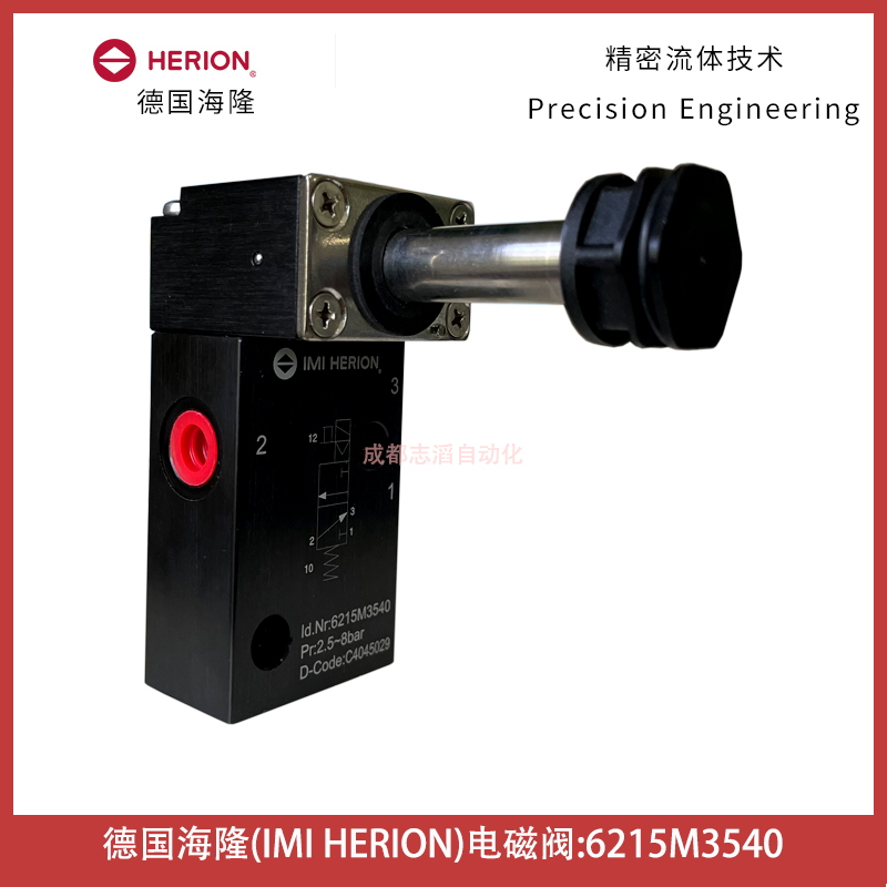 德國海隆(herion)6215管接&NAMUR系列技術參數簡介:介質經過濾的潤滑或者非潤滑干燥的壓縮空氣、工作方式先導電磁控制滑閥、工作壓力2.5-8bar,內部供氣、通徑ND6MM(1/4)、接口尺寸G1/4,1/4NPT,或NAMUA連接、流向固定、安裝位置任意,脈沖閥建議水平安裝、環境及流體溫度-40到60攝氏度、材料閥體陽極氧化鋁、不銹鋼、密封件MBR(特殊丁晴橡膠)!