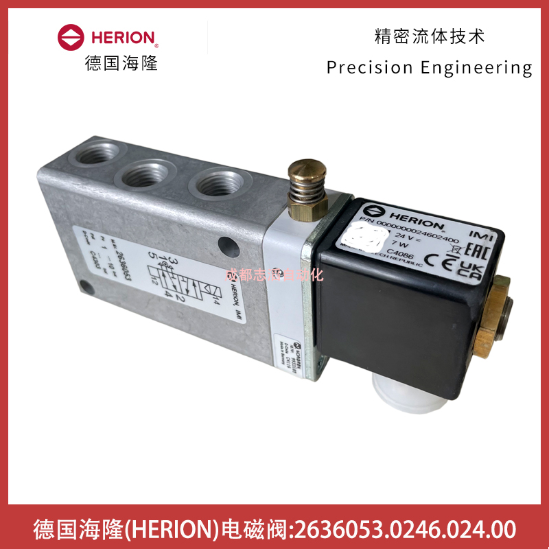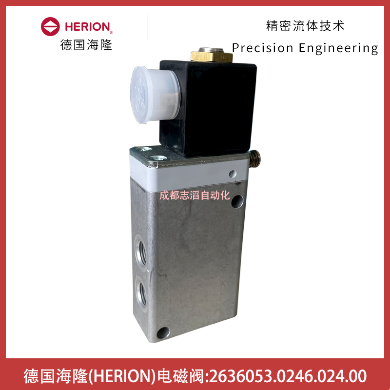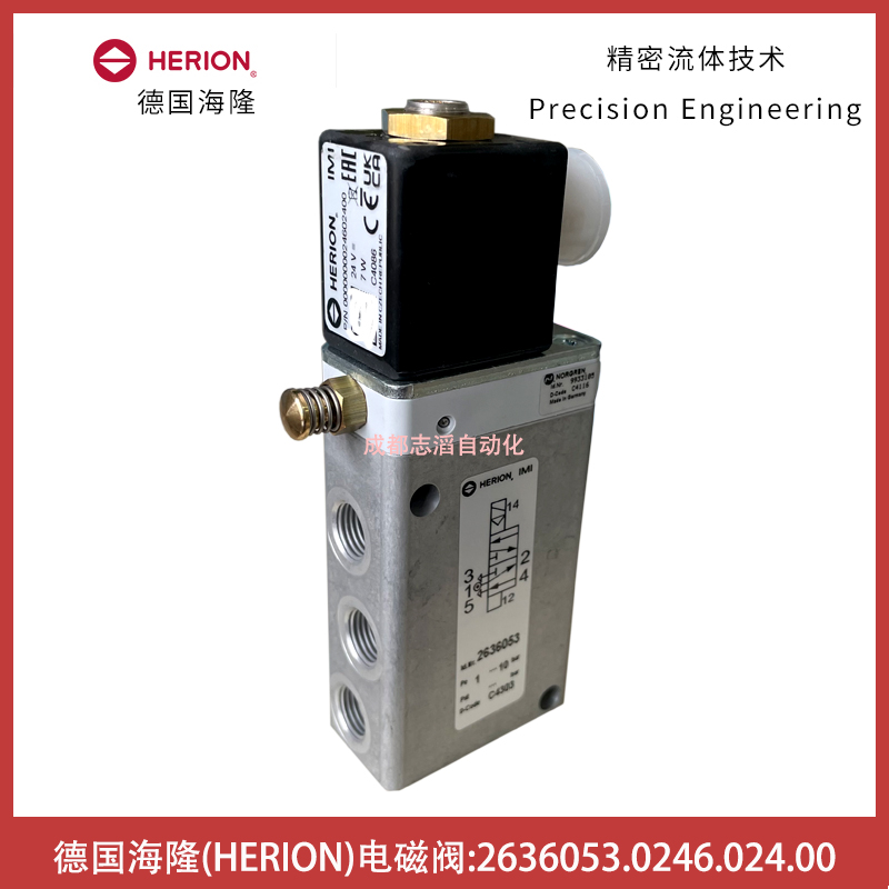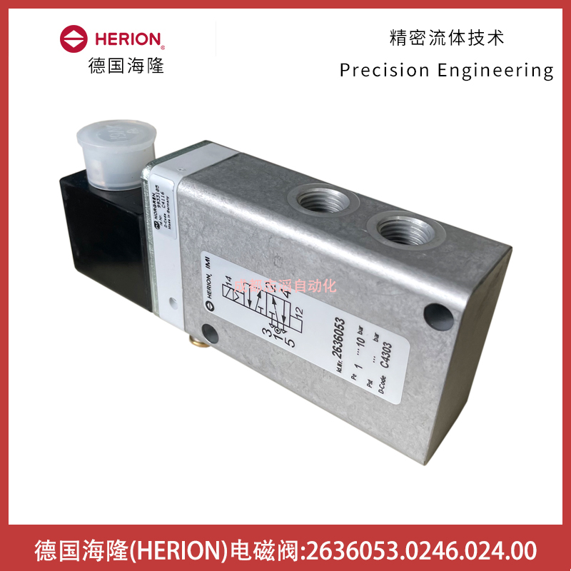 2636053.0246.024.00德國海隆IMI HERION電磁閥-埃邁諾冠技術參數簡介:功能2位5通、接口尺寸G1/4、工作壓力范圍1-10bar、流量1200l/min、切換時間35ms、手動應急控制彈簧按鈕、閥體重量0.55kg、配海隆IMI HERION普通線圈0246、電壓24VDC、產地捷克