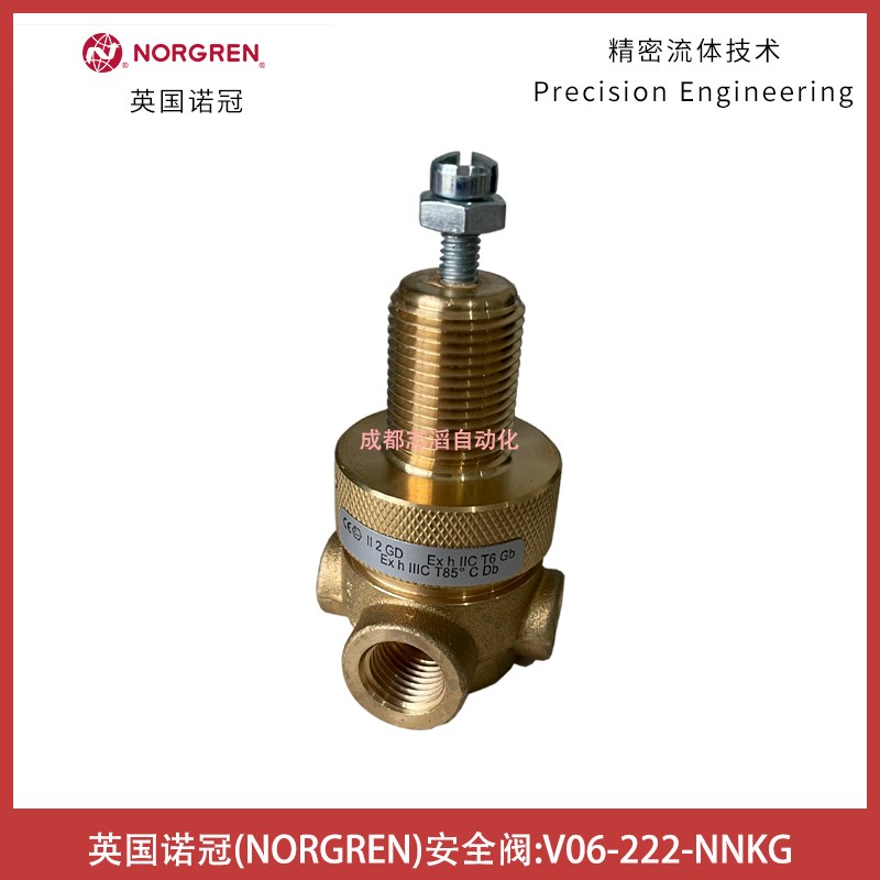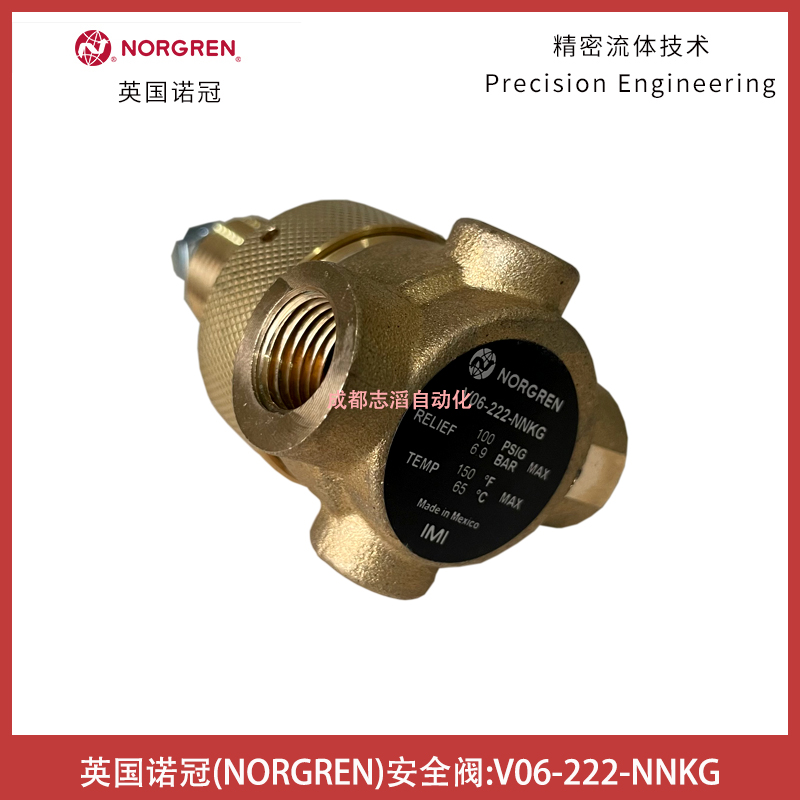 V06-222-NNKG英國諾冠NORGREN安全閥技術參數簡介:接管口徑1/4、介質水和壓縮空氣、zui大壓力27.6bar(400psi)、工作溫度范圍2-65攝氏度(塑料閥蓋),2-80攝氏度(黃銅閥蓋)、儀表接口1/8PTF、產地墨西哥