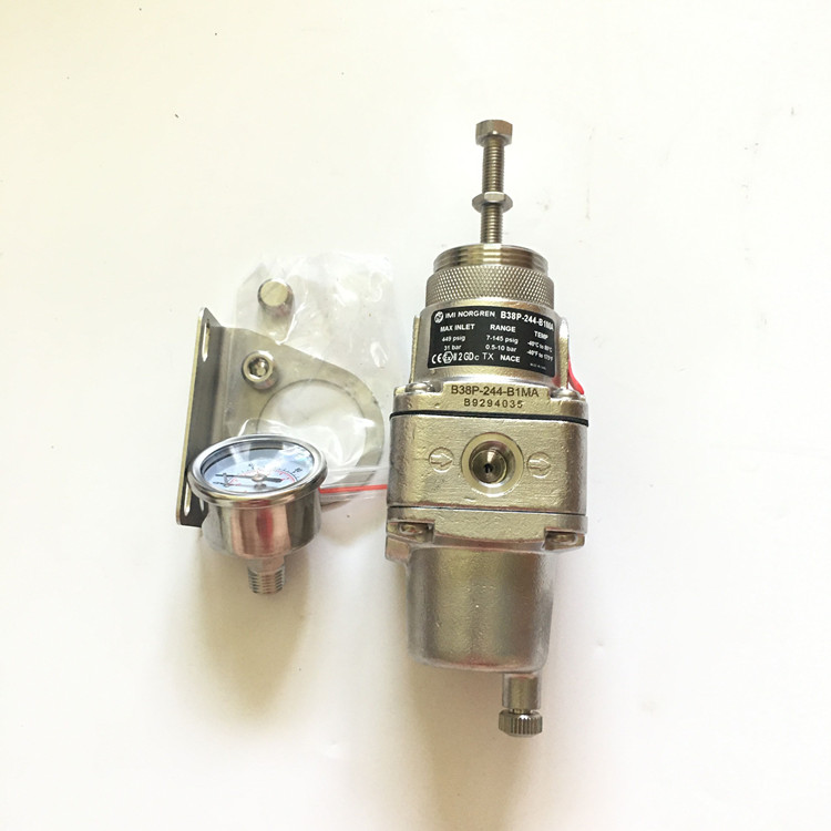 B38P-244-B1MA英國諾冠(IMI NORGREN)過濾調壓閥技術參數簡介:接口尺寸1/4NPT、出口壓力0.5-10bar、過濾精度為5um、流量為40升/min、排水方式為手動短杯、重量為1.61kg、材料殼體,濾杯,上蓋,濾芯以及調節螺釘為316不銹鋼、密封為FKM或NBR、環境及流體溫度范圍為-40到80攝氏度、進口壓力可達17bar、產地為中國!
