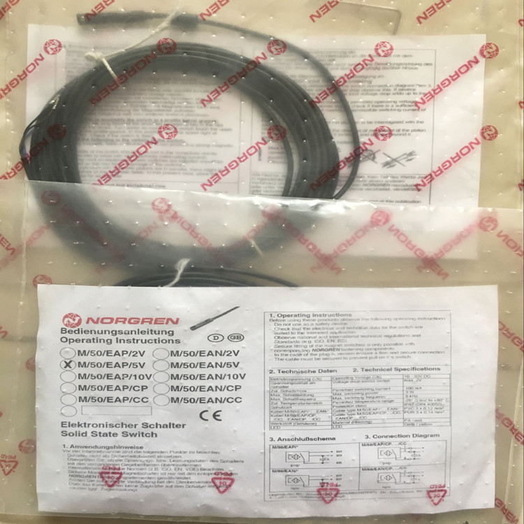 M/50/EAP/5V英國(guó)諾冠IMI NORGREN氣缸磁性開(kāi)關(guān)配件:集成電纜式(固體繼電器型)、線纜長(zhǎng)度為5米、插入式電纜型號(hào)M/P73001/5!適用于諾冠氣缸