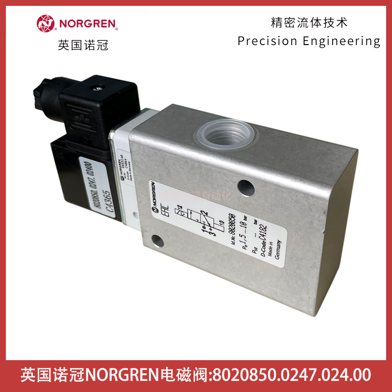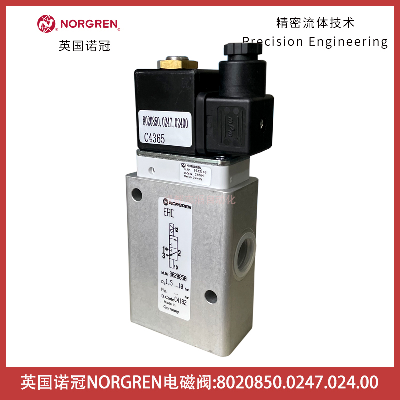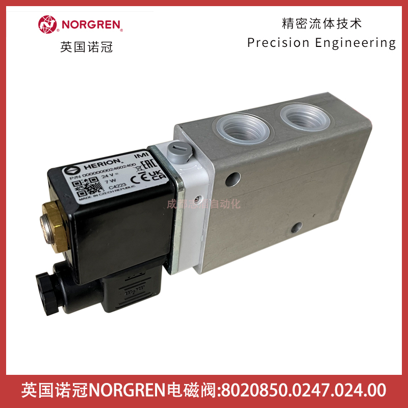 英國諾冠NORGREN電磁閥-德國海隆(IMI HERION)先導電磁控制閥26360,80207管接式共同規格:介質經過濾的潤滑或非潤滑壓縮空氣、工作方式先導電磁控制-滑閥、接口尺寸G1/4,G1/2、工作壓力可達10bar、流向固定、安裝任意,減壓電磁線圈置于頂部、通徑8mm,12mm、工作溫度-10到60攝氏度;材料閥體陽極氧化鋁、先導頭,法蘭塑料、密封件丁晴橡膠、