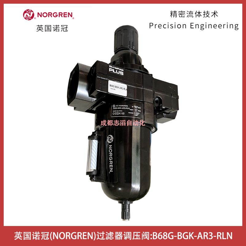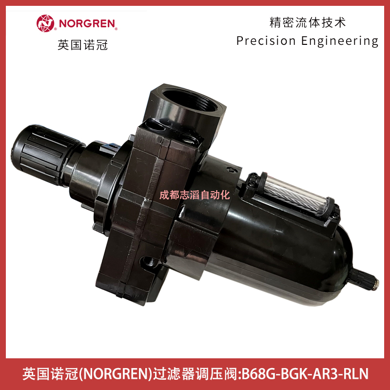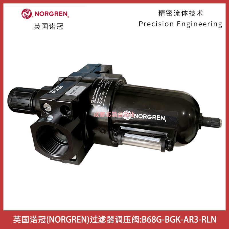 B68G-BGK-AR3-RLN英國諾冠(IMI NORGREN)過濾器調壓閥技術參數簡介:氣口尺寸1.5寸、螺紋ISO-G直螺紋、調節方式旋鈕、排放自動排水、濾杯0.5升帶液位指示器金屬杯、濾芯精度40um、膜片溢流型、輸出壓力范圍0.4-8公斤、不帶壓力表、產地墨西哥