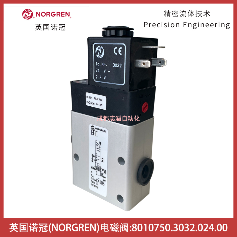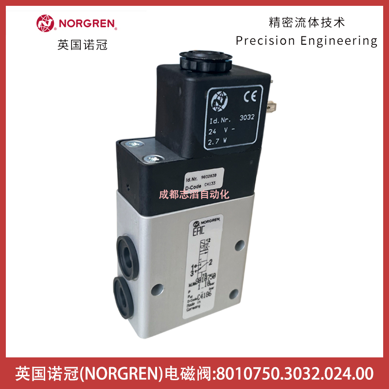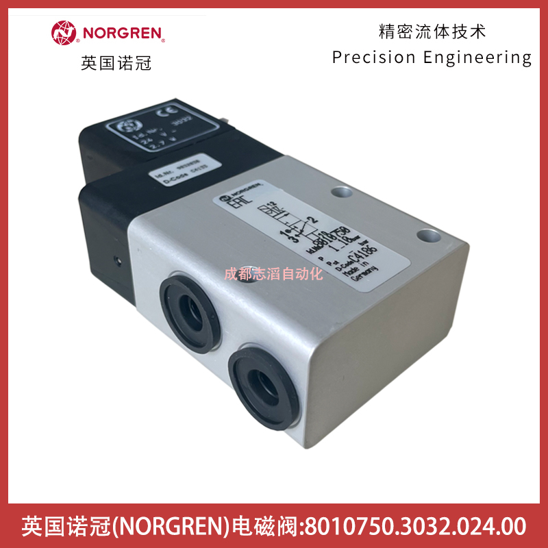 8010750.3032.024.00英國諾冠電磁閥NORGREN-IMI埃邁海隆HERION技術參數簡介:接口尺寸G1/4、功能兩位三通、驅動方式電控氣彈簧復位、通徑6mm、工作壓力范圍1-10bar、流量1200l/min、閥體重量04kg、先導型號為9032830、產地為德國、線圈3032 、功率為2.7w、防護等級IP65(帶電氣插頭)、環境-流體溫度(-40到50)攝氏度、電氣連接DIN43650 A型、線圈重量0.09kg、產地為德國!!