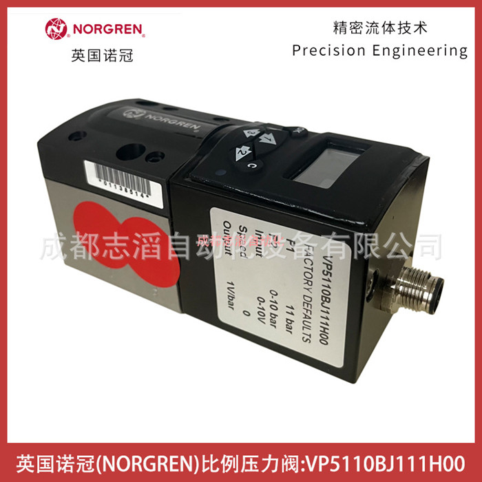 VP5110BJ111H00英國諾冠比例壓力閥NORGREN氣動控制元件技術參數簡介:控制信號0-10V、輸出壓力0-10bar、產地為捷克、由于本款壓力比例閥所需使用空氣的質量比較高,處理精度需要達到5um!不然會使其使用壽命減短!